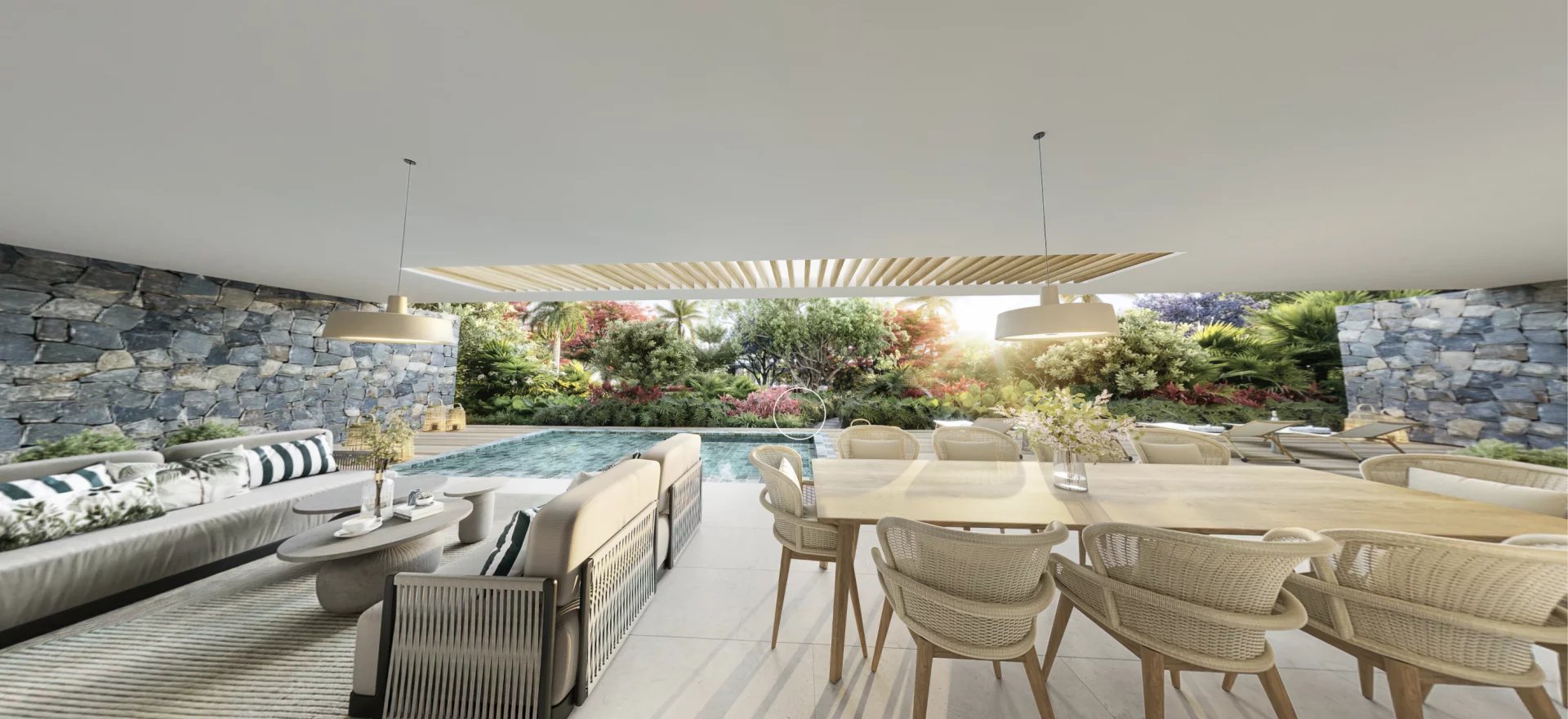 A seamless expanse of private indoor-outdoor space creates a truly relaxed residence. Terraces serve as outdoor rooms, ideal for alfresco living and gathering alongside the