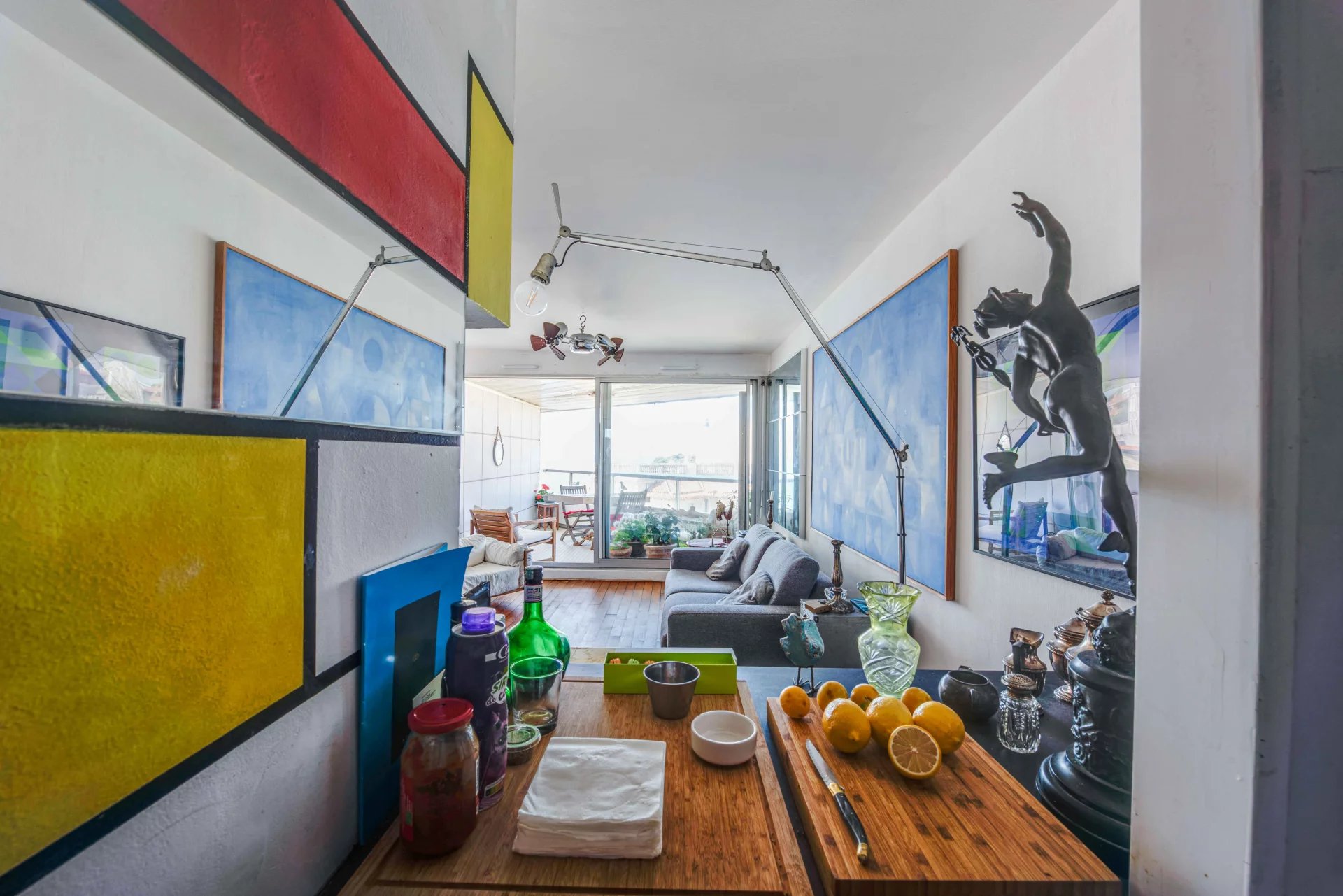 Learn moreOn a high floor with elevator and gardien, it comprises an entrance hall, a living room opening onto a large terrace, a fitted and equipped kitchen with a view, and a bathroom.