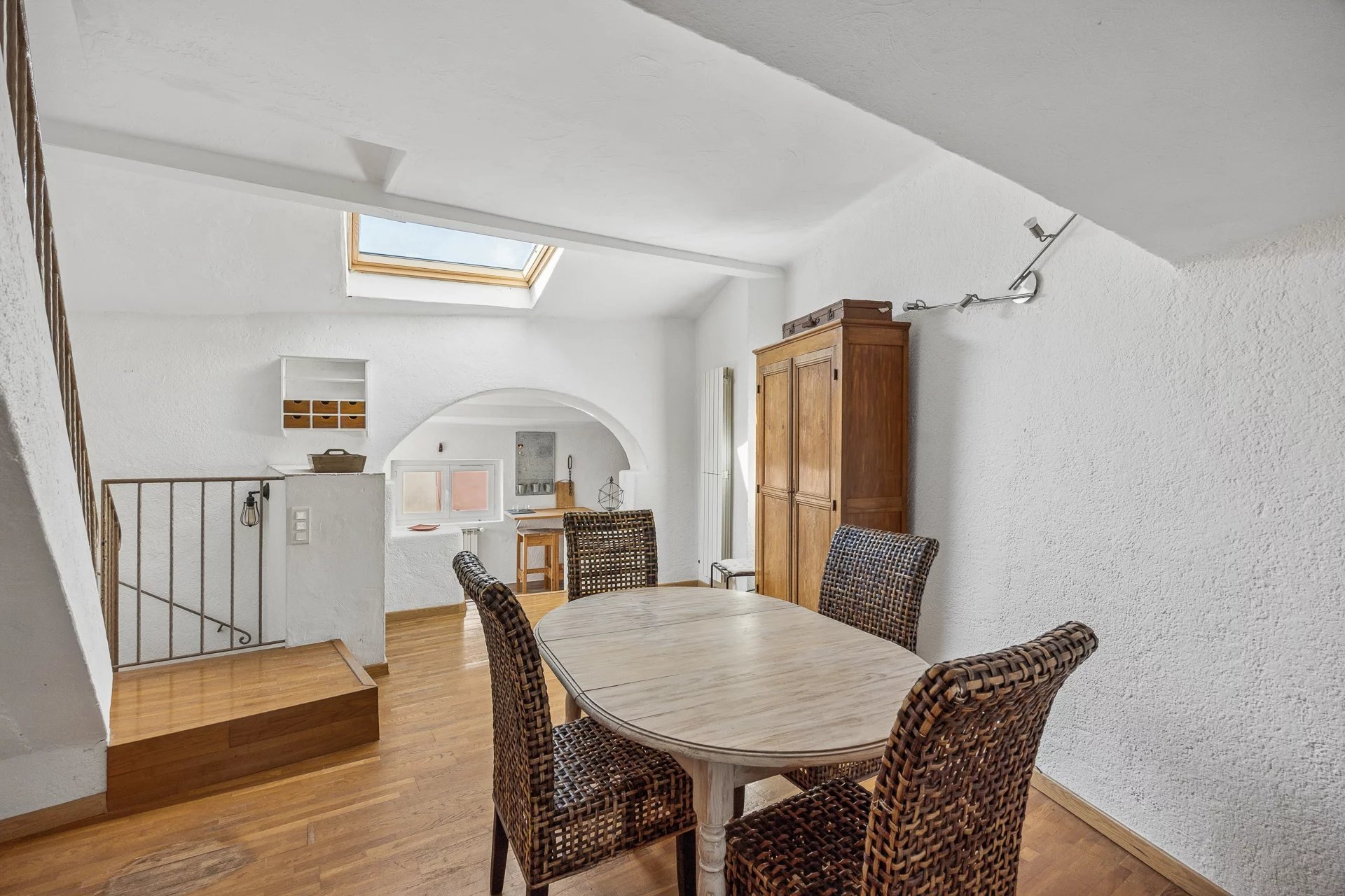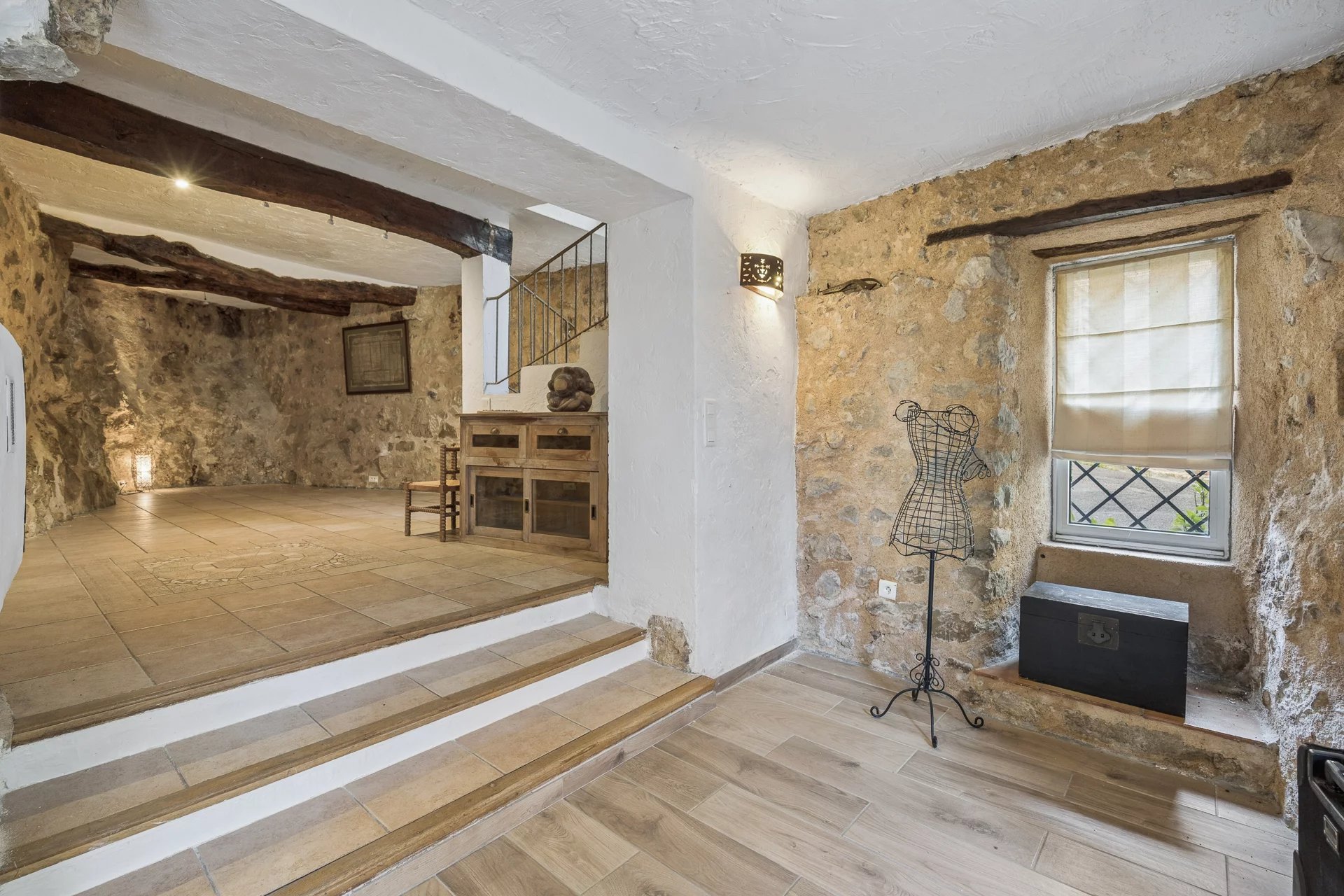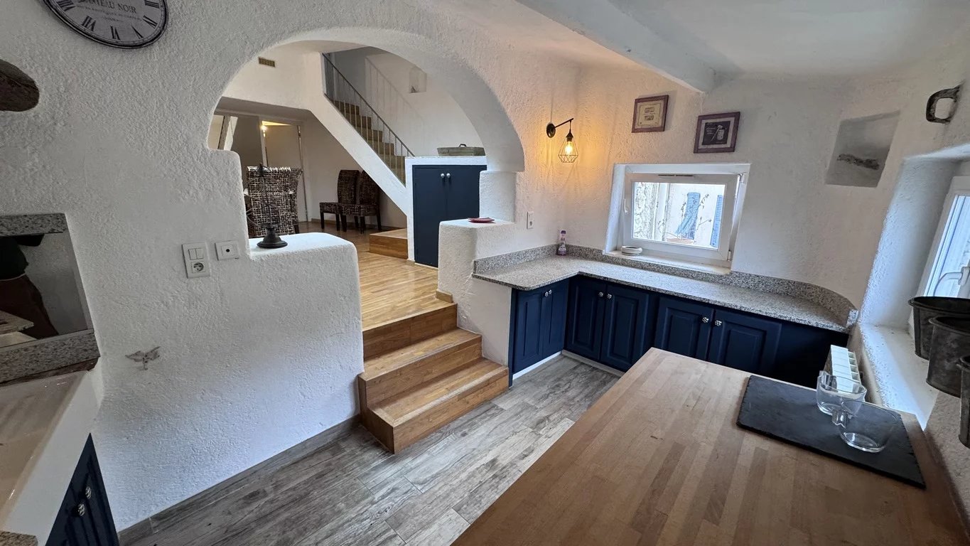 A building originally part of the old castle grounds, this village house will charm you with its character: exposed beams, stone walls, all spread over four floors. It features a living room with a fireplace, a dining room with a kitchen opened up by a medieval-style archway, 4 bedrooms, a bathroom, and a shower room, all situated in the heart of the village, close to the panoramic views, the ‘grand pré’ and the restaurants, in this Provençal village with such a pleasant atmosphere.Possibility of creating a rooftop terrace (planning application submitted)
