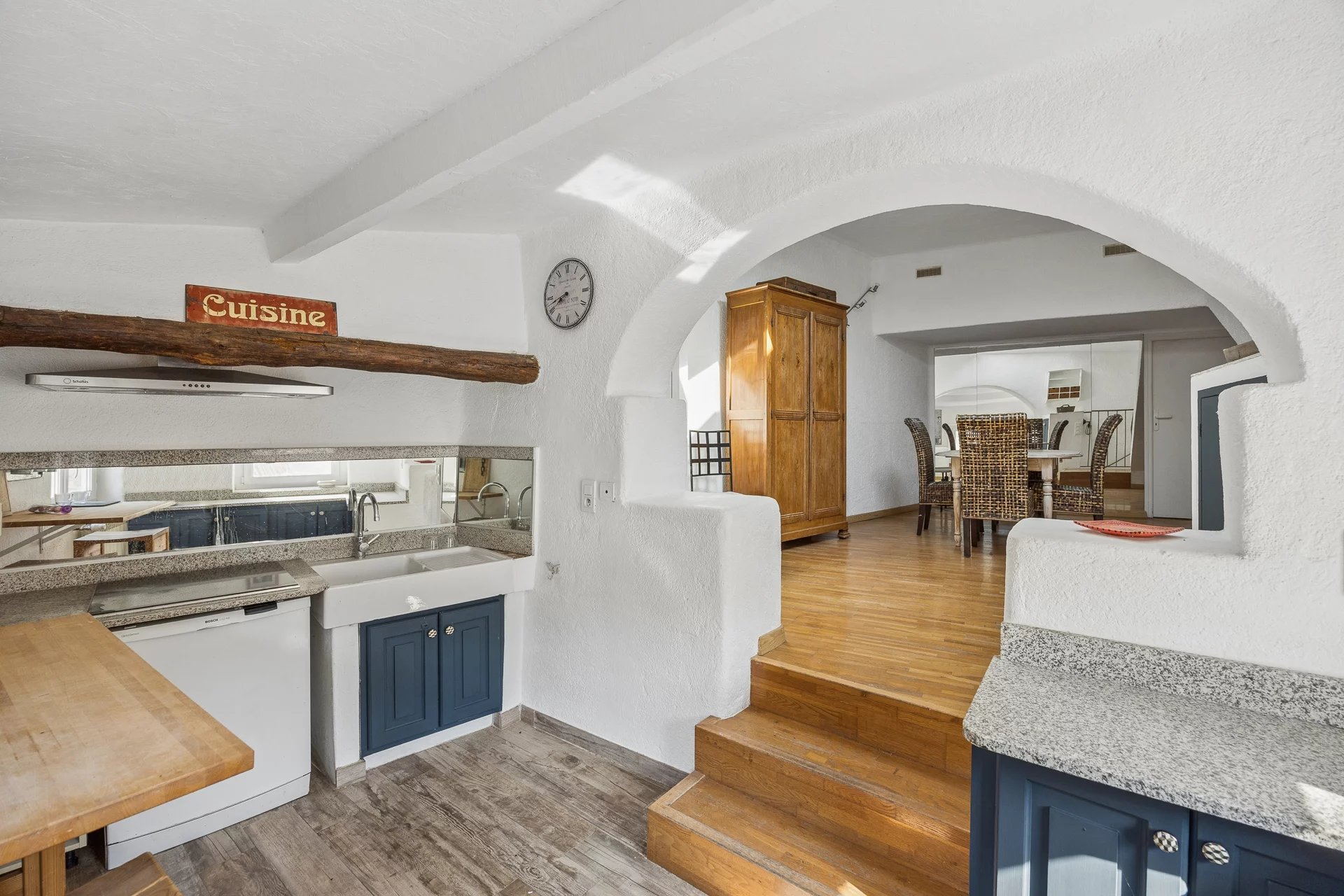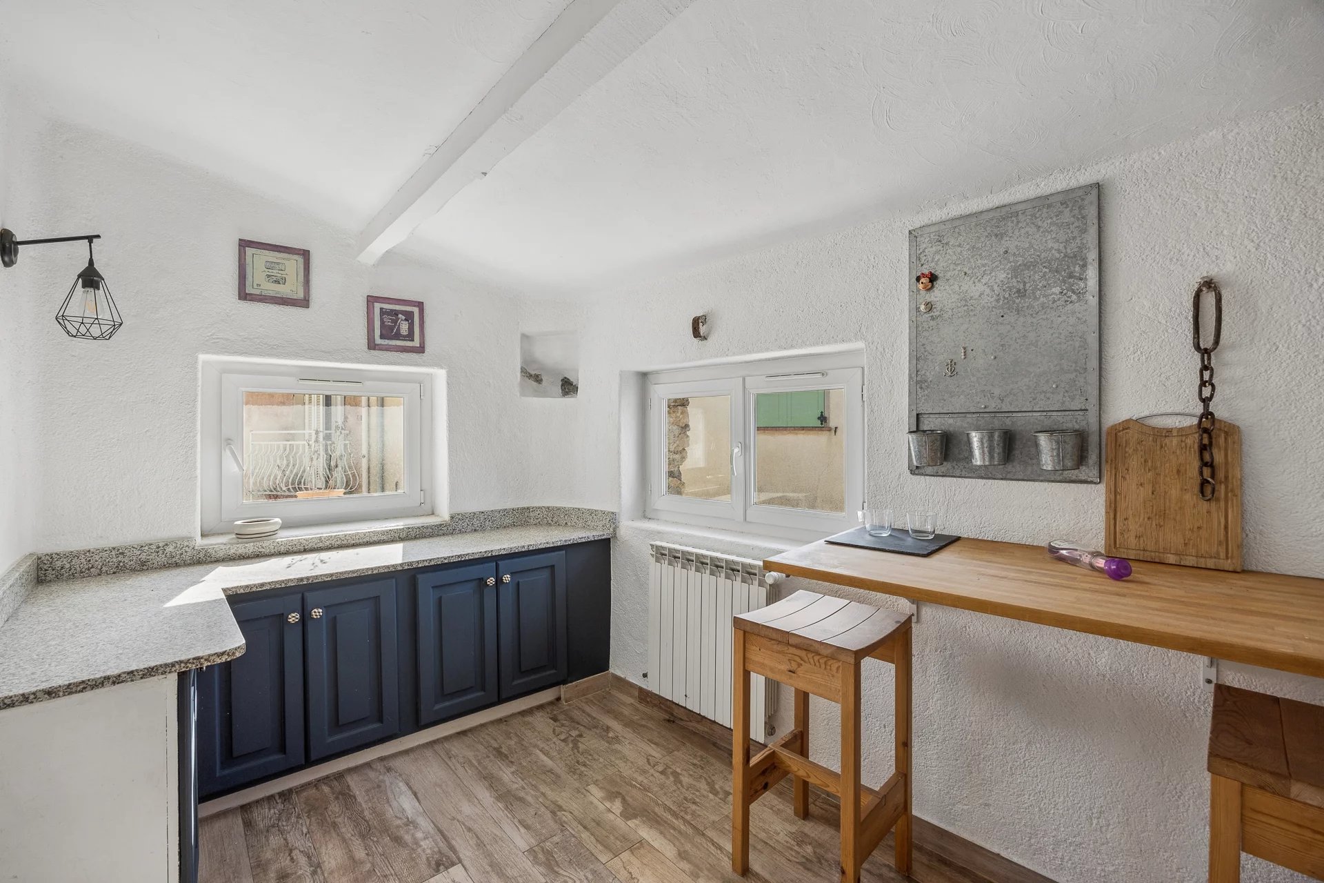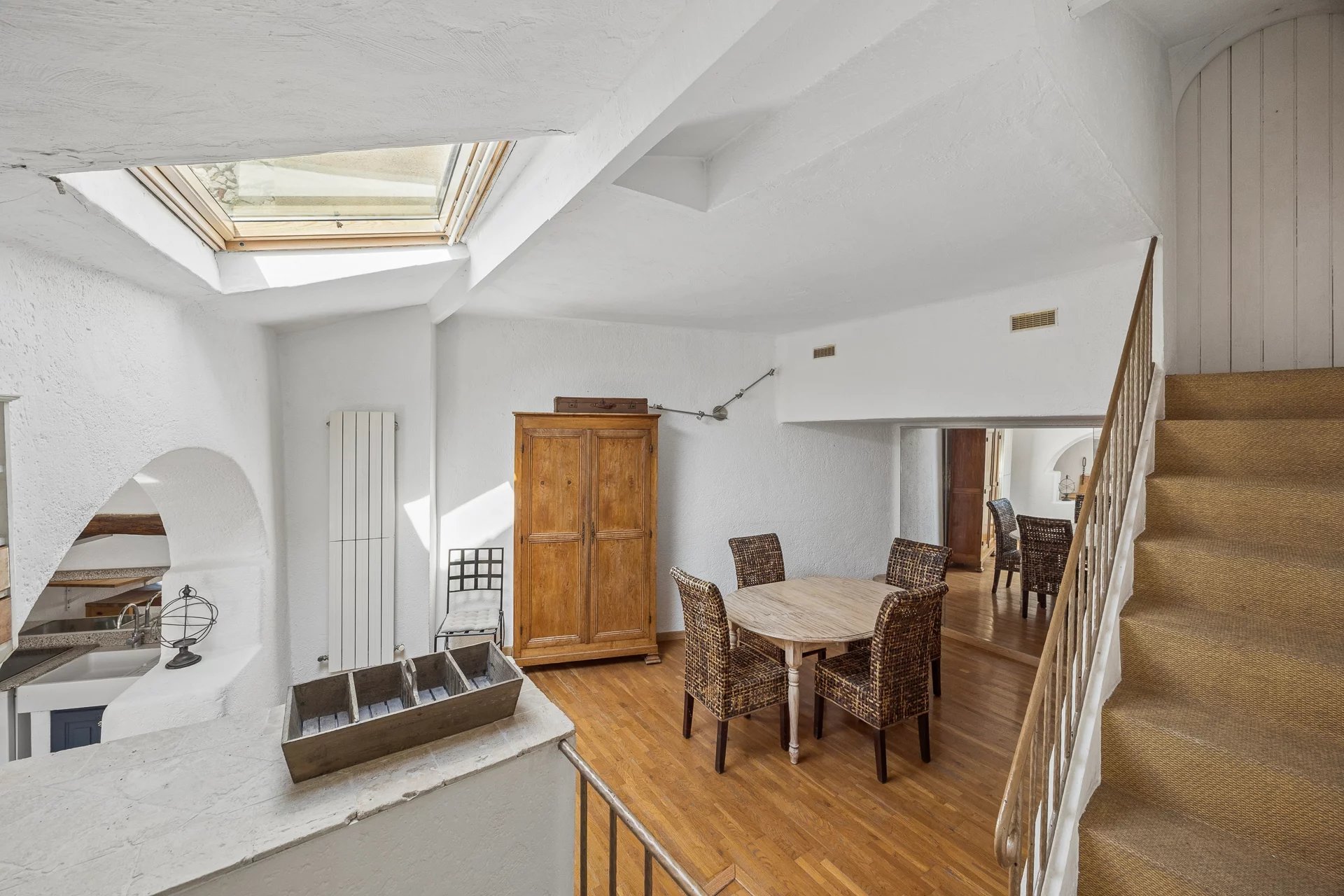 A building originally part of the old castle grounds, this village house will charm you with its character: exposed beams, stone walls, all spread over four floors. It features a living room with a fireplace, a dining room with a kitchen opened up by a medieval-style archway, 4 bedrooms, a bathroom, and a shower room, all situated in the heart of the village, close to the panoramic views, the ‘grand pré’ and the restaurants, in this Provençal village with such a pleasant atmosphere.Possibility of creating a rooftop terrace (planning application submitted)