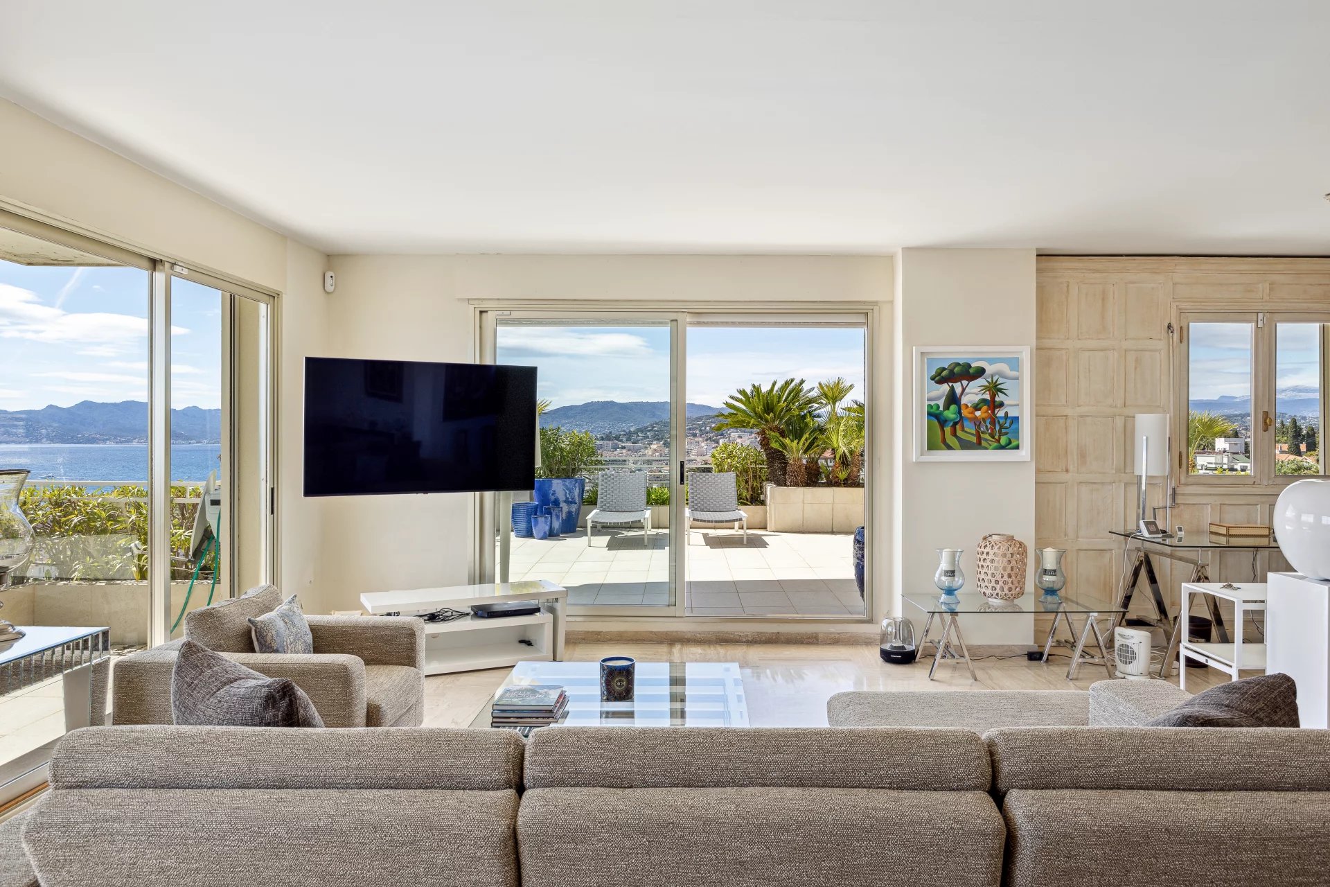 Discover this exceptional apartment, nestled in the heart of a prestigious residence in the sought-after neighborhood of Basse Californie in Cannes. With 163.07 m² of living space according to the Carrez law, this high floor corner apartment benefits from a panoramic sea view over the famous Lérins Islands and the Mediterranean.