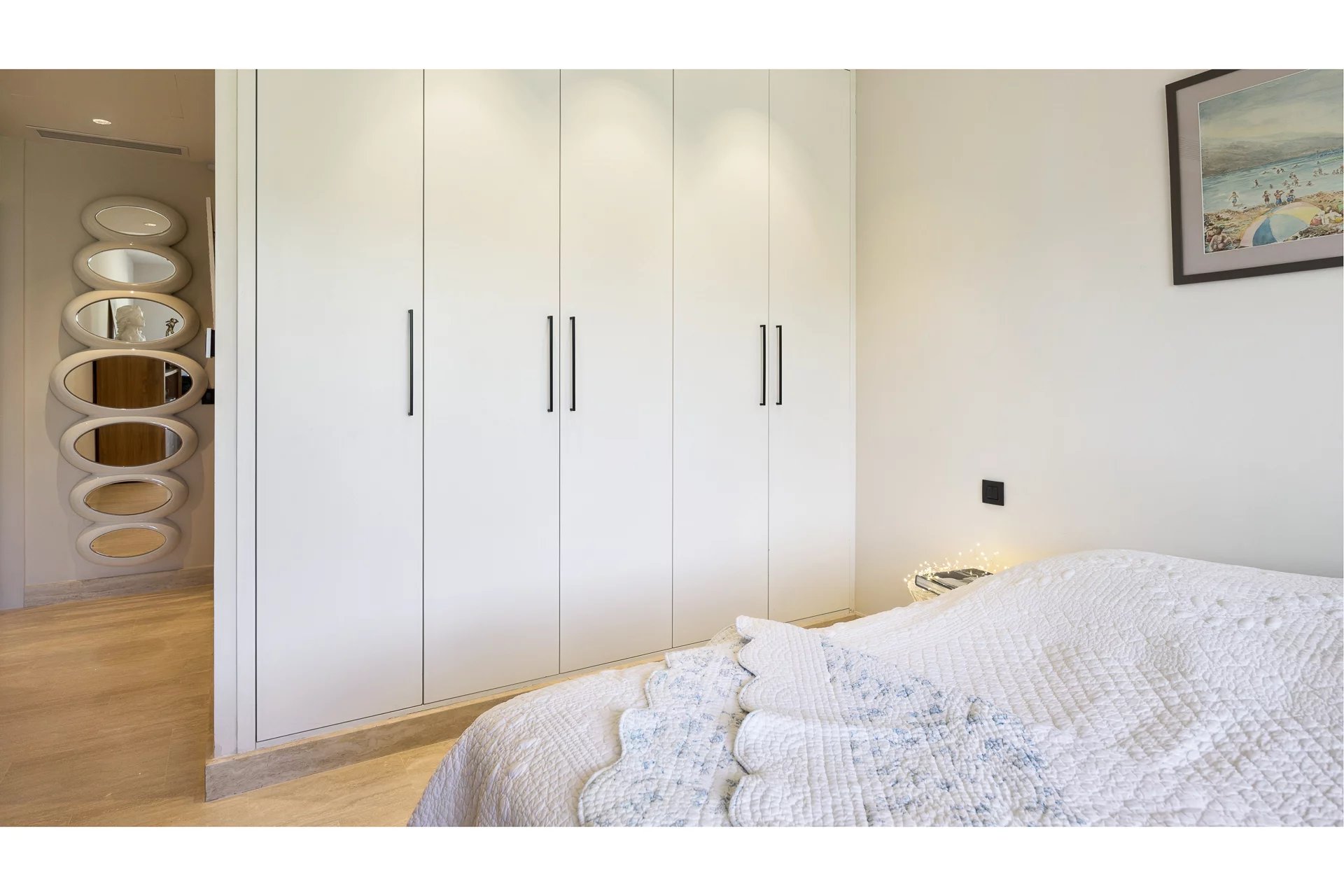 Learn moreThe apartment, perfectly maintained, stands out with its spacious and bright living room with a fully equipped modern open kitchen. The magnificent south-facing terrace boasts breathtaking views of the Mediterranean Sea and the famous Lérins Islands, creating an ideal space for relaxation or entertaining guests.