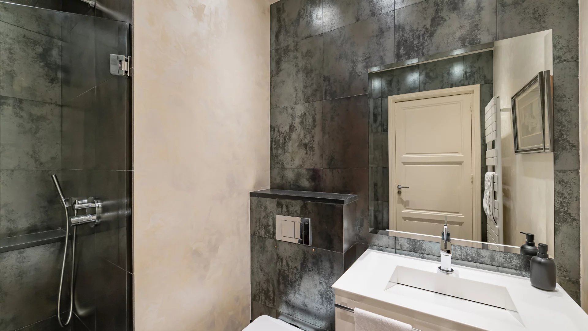 Learn moreIt comprises an entrance hall, a vast hall with dressing room leading to a luminous, south-facing double living room with large bay windows. The kitchen, in brown granite and fully equipped with top-of-the-range appliances, is complemented by a functional laundry area.
