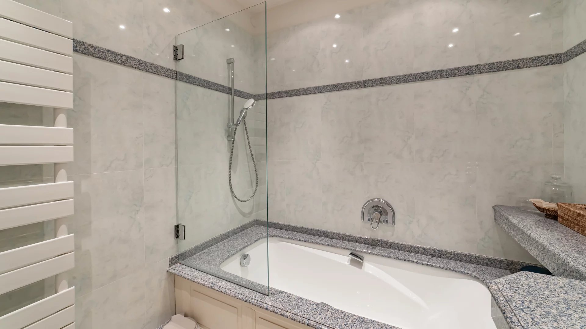 With a surface area of approx. 114 m², it comprises: entrance hall, double living room, master bedroom with en suite bathroom opening onto a vast 30 m² terrace, guest toilet, fully-equipped kitchen, storeroom and bedroom with bathroom.