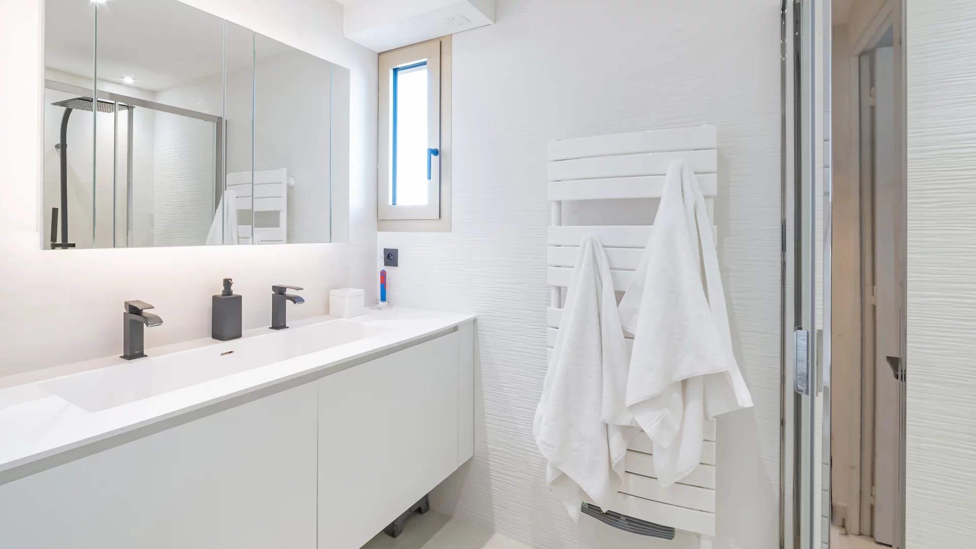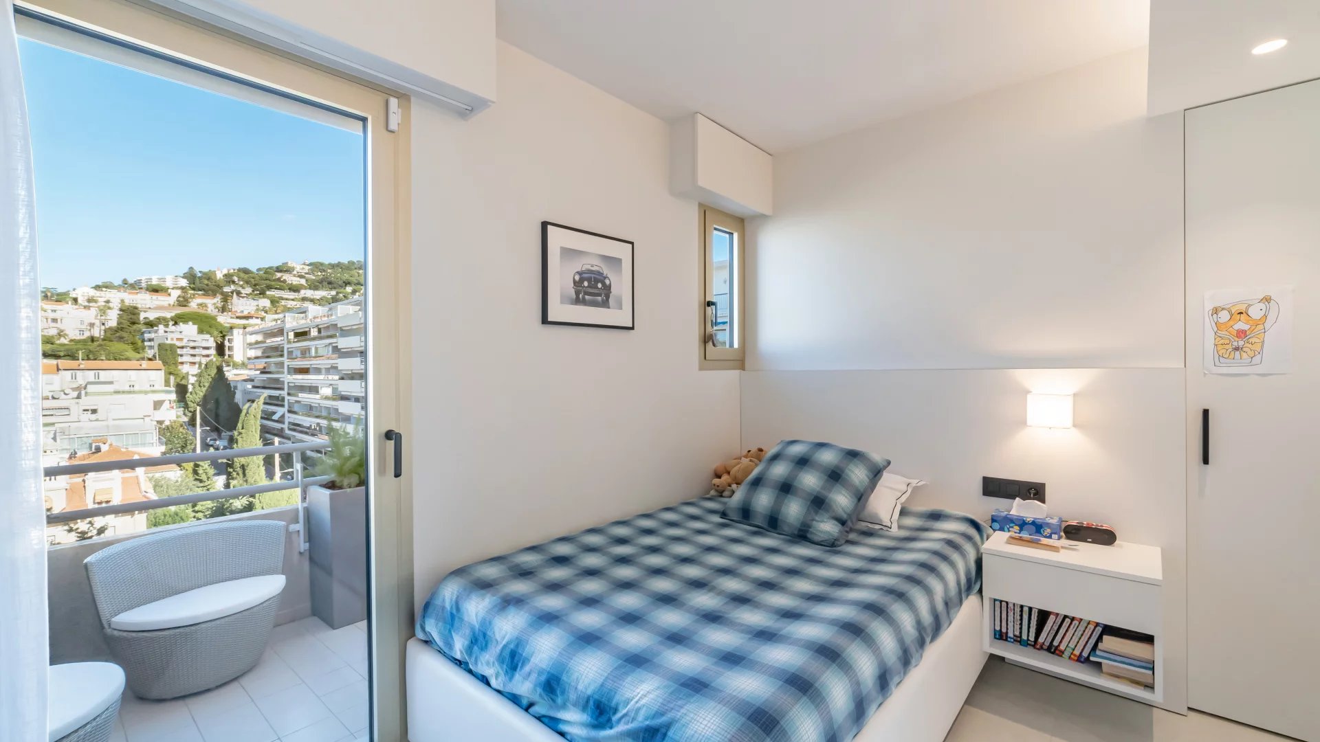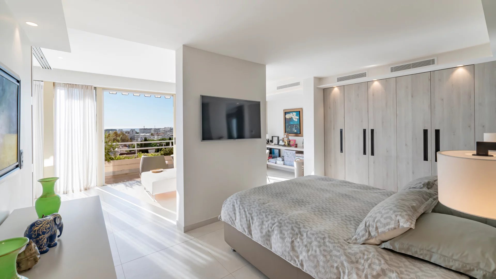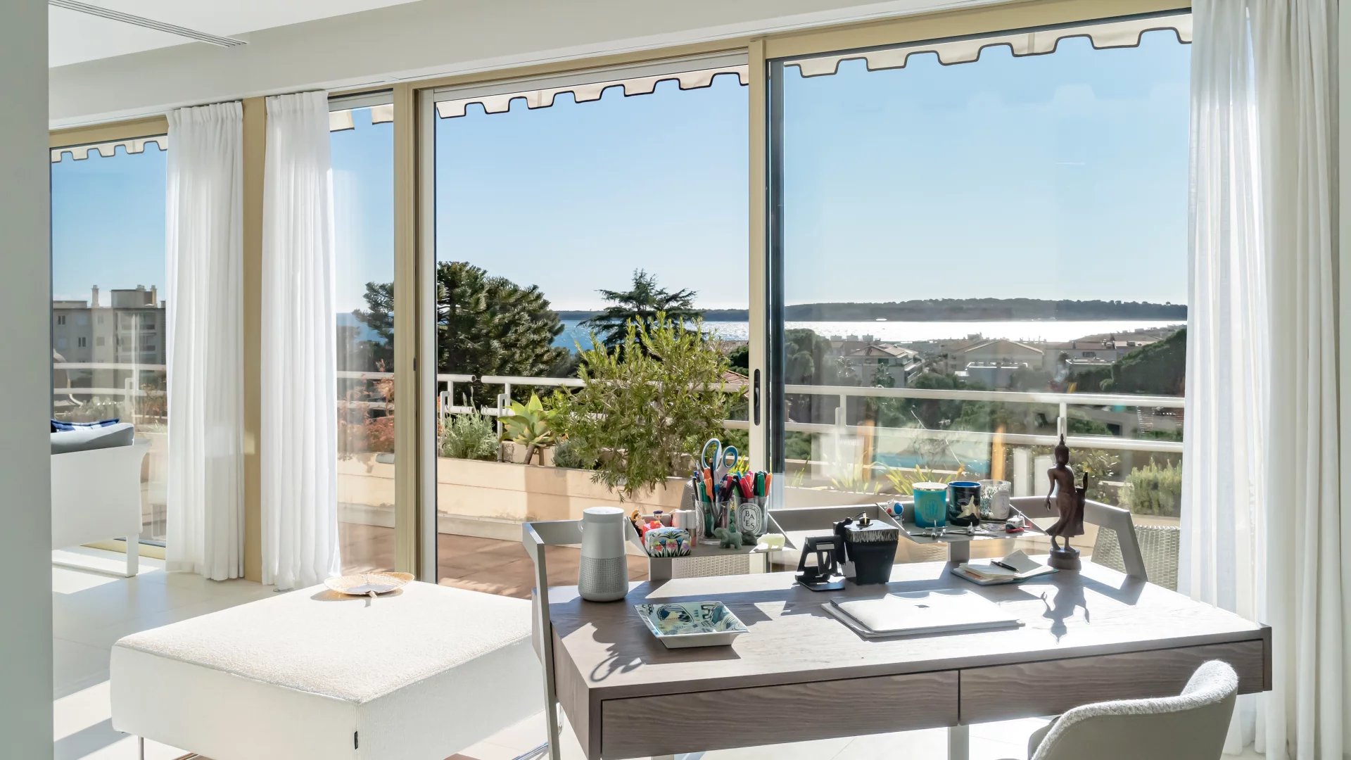 Magnificent, fully renovated duplex penthouse located within walking distance of the Croisette and shops, with a beautiful view of the sea and the Lérins islands.