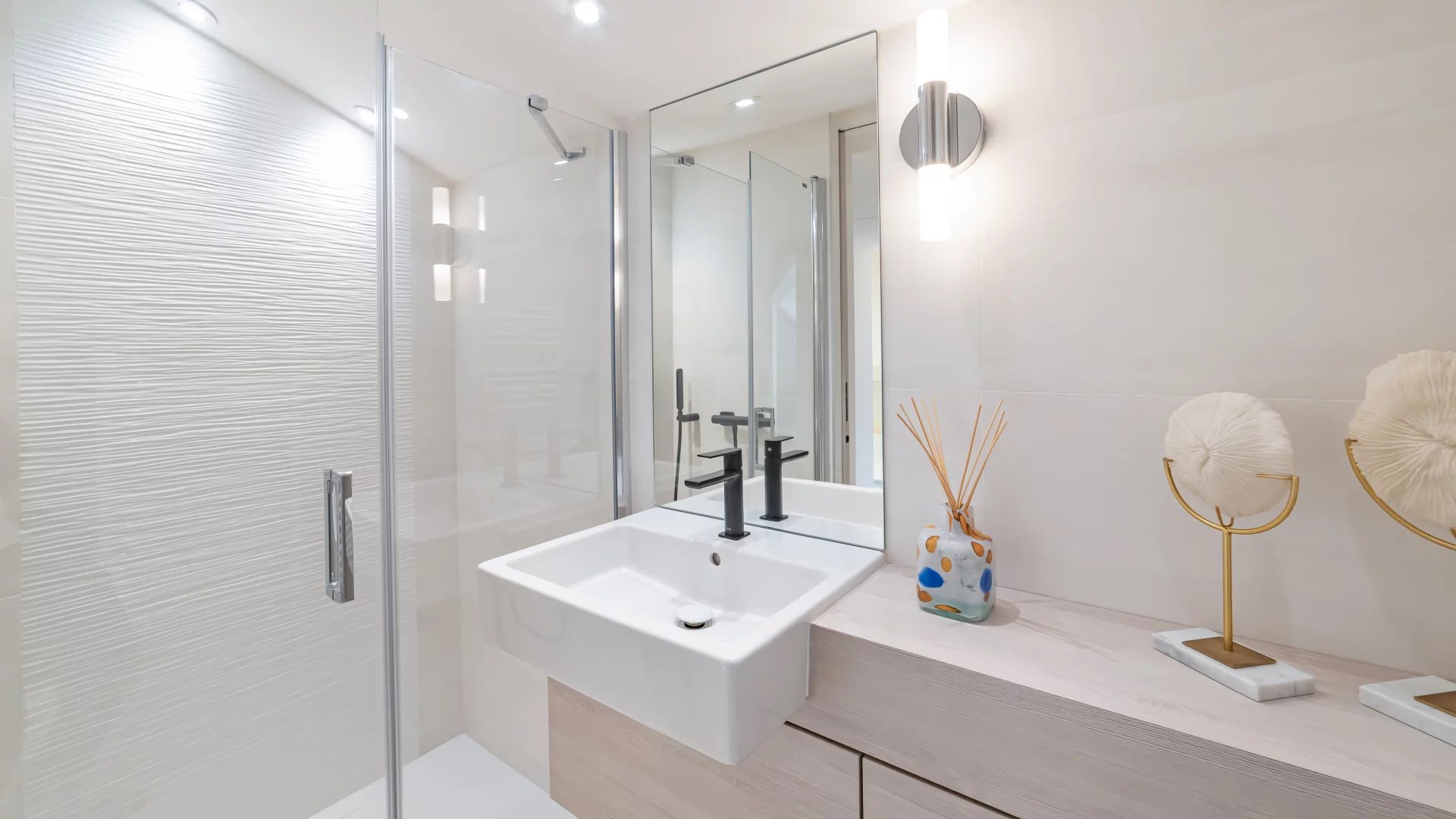 It boasts 50 m² of terraces. South-facing, it has a floor area of over 200 m² (173.49 m² Loi Carrez) and comprises: an entrance hall with guest toilet, a double living room with open-plan fitted kitchen, a master bedroom with en suite shower room, study area and dressing room, all opening onto the terrace, two other bedrooms each opening onto a balcony and sharing a shower room. On the mezzanine are a games room, an office/bedroom, a shower room and a technical/storage room.