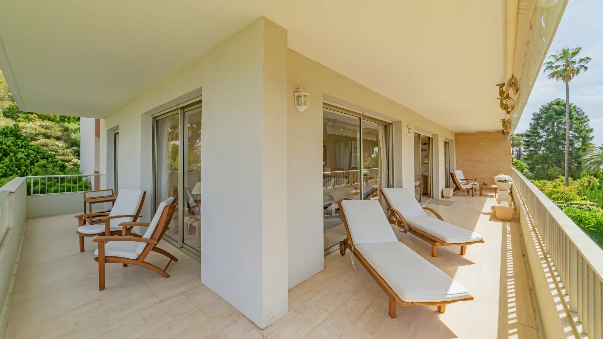 The light-filled apartment comprises an entrance hall, a vast living room and kitchen opening onto a large 39.8 m² terrace, three bedrooms, two with en suite shower rooms and balcony access.