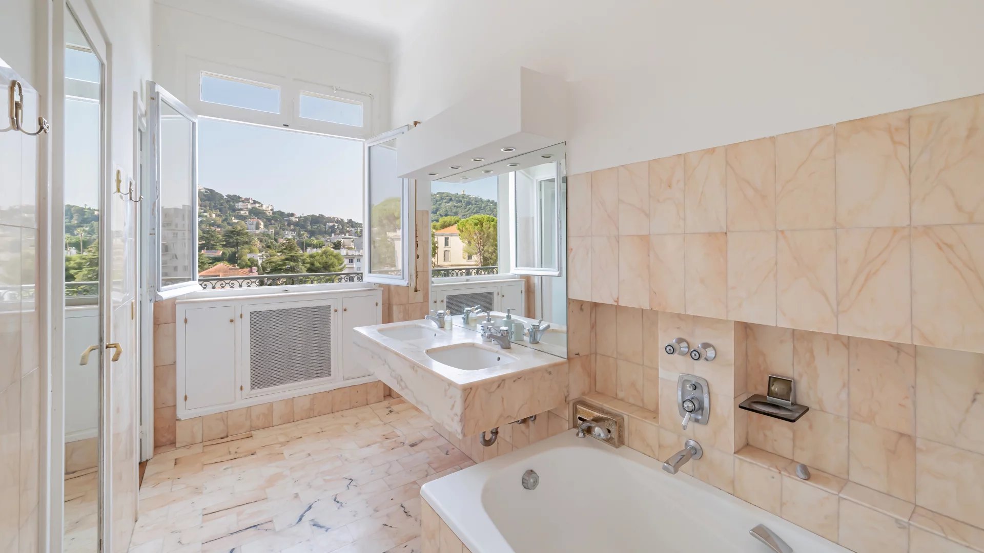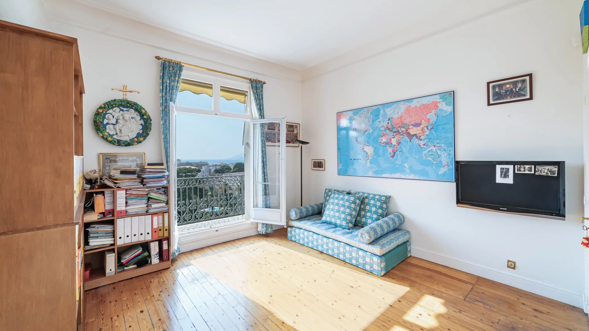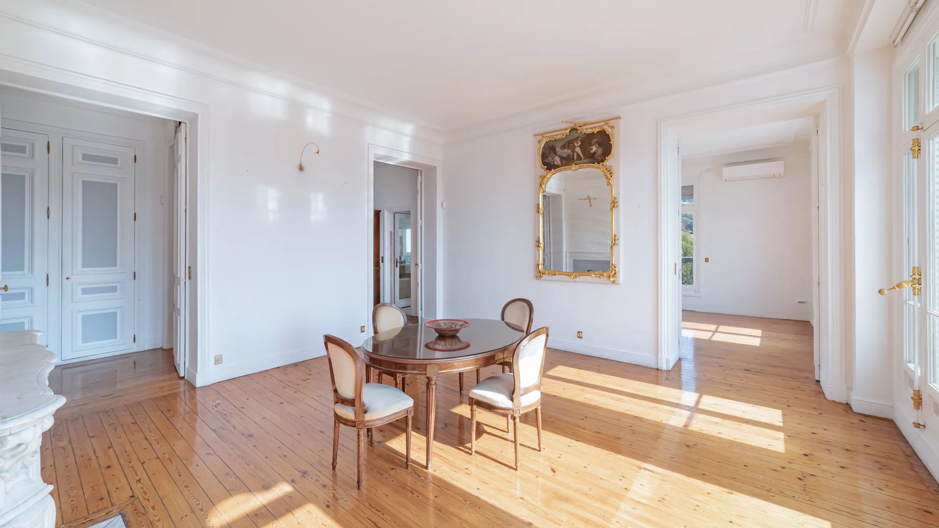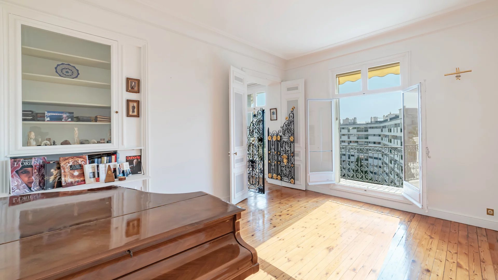 In a sumptuous late 19th century residence, on the top floor with elevator, this magnificent 189 m² master apartment offers a view all the way to the sea. It comprises two living rooms, a dining room, two bedrooms, an office and opens onto a 10 m² terrace.