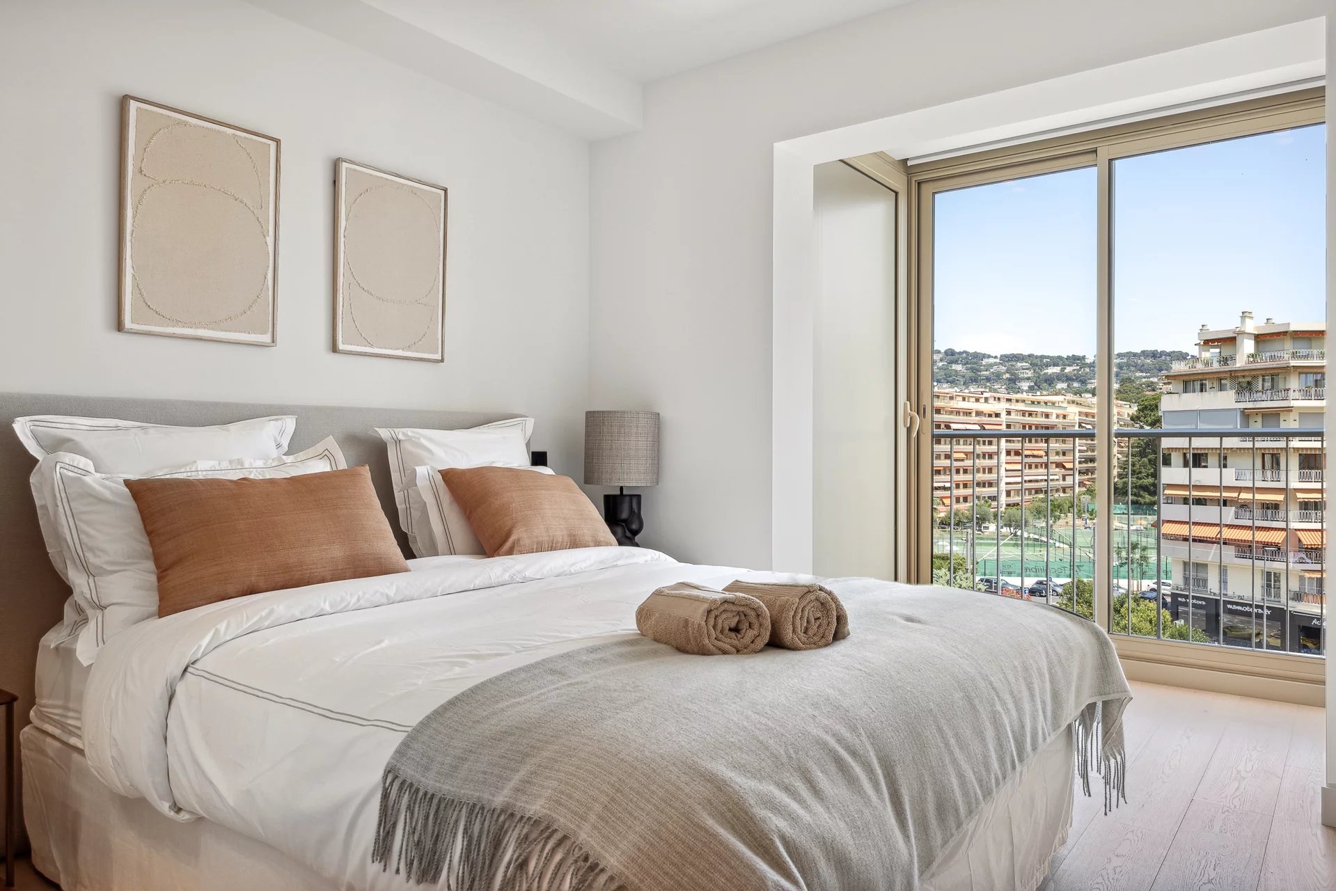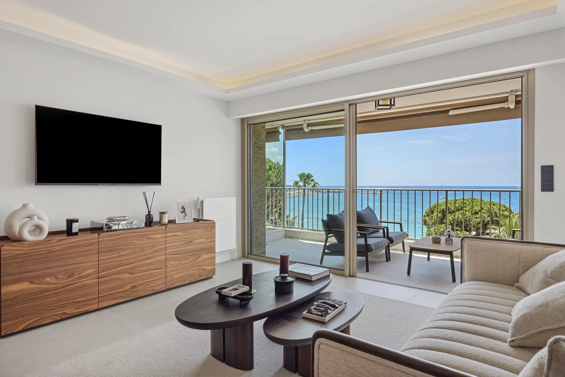 Located in a luxury residence in the heart of the Croisette, this superb flat of around 70m2 offers panoramic views over the Bay of Cannes.
