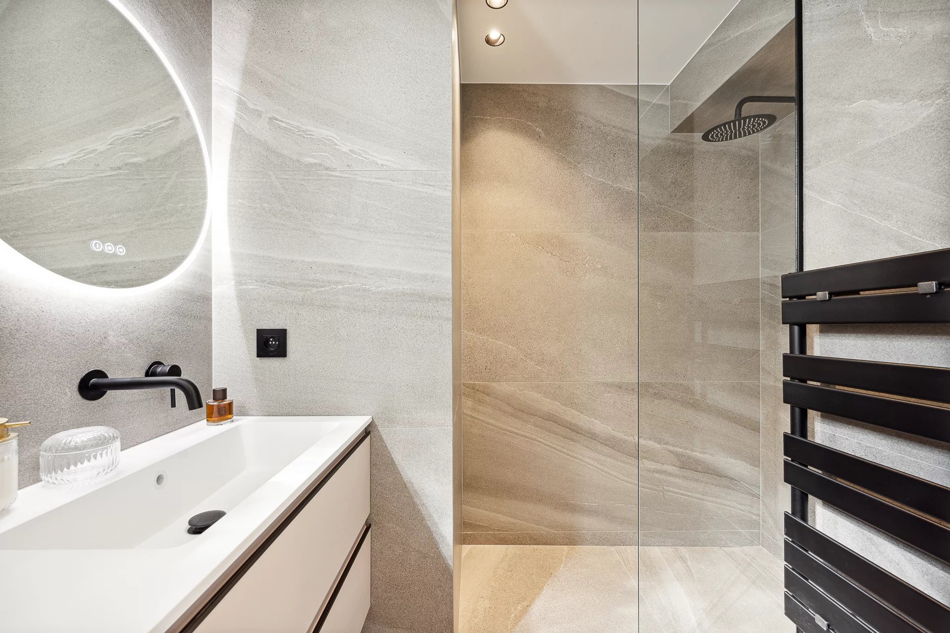 It consists of an entrance hall, a living/dining room with open kitchen opening onto a 11m2 terrace and three bedrooms en suite.