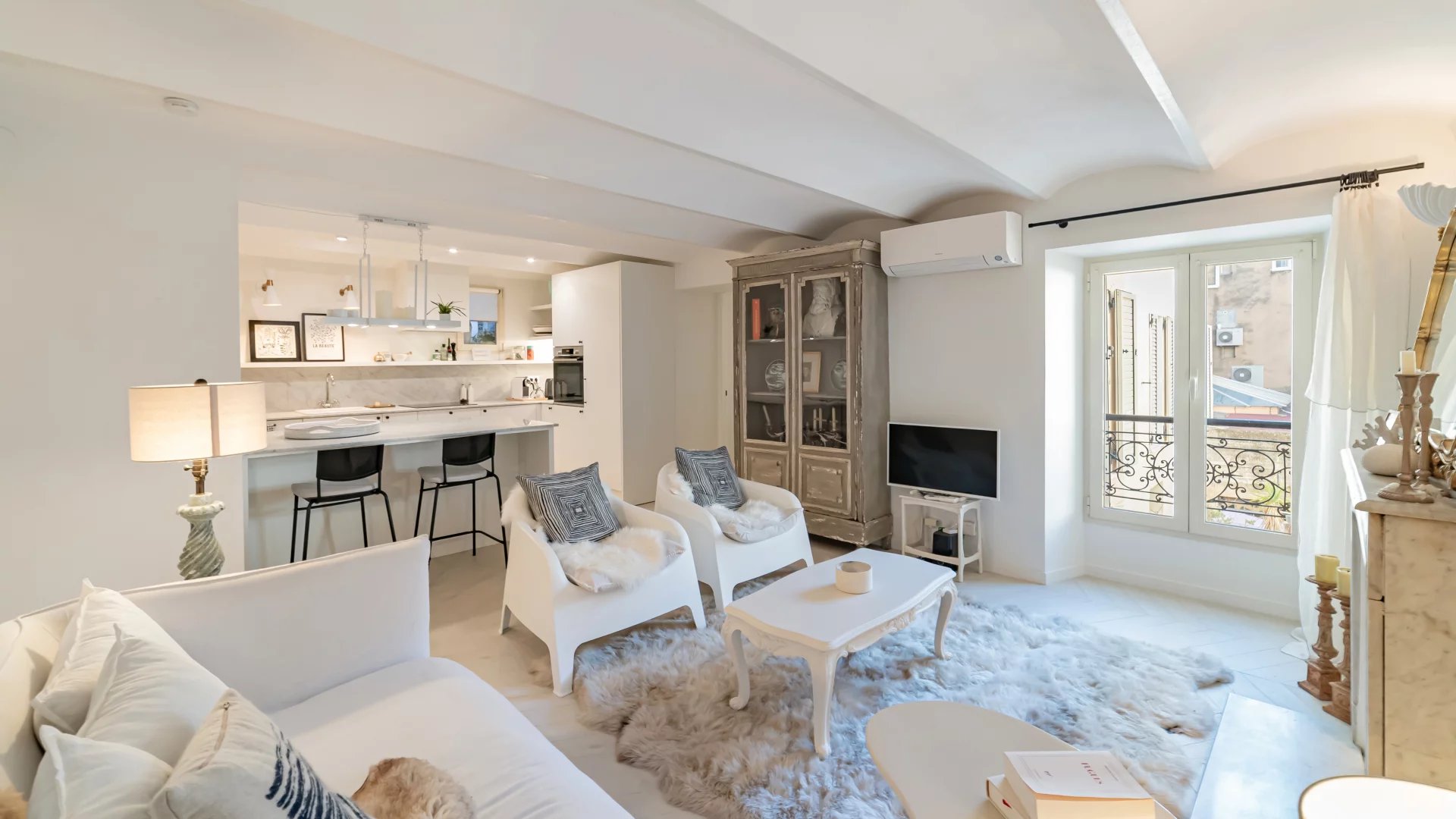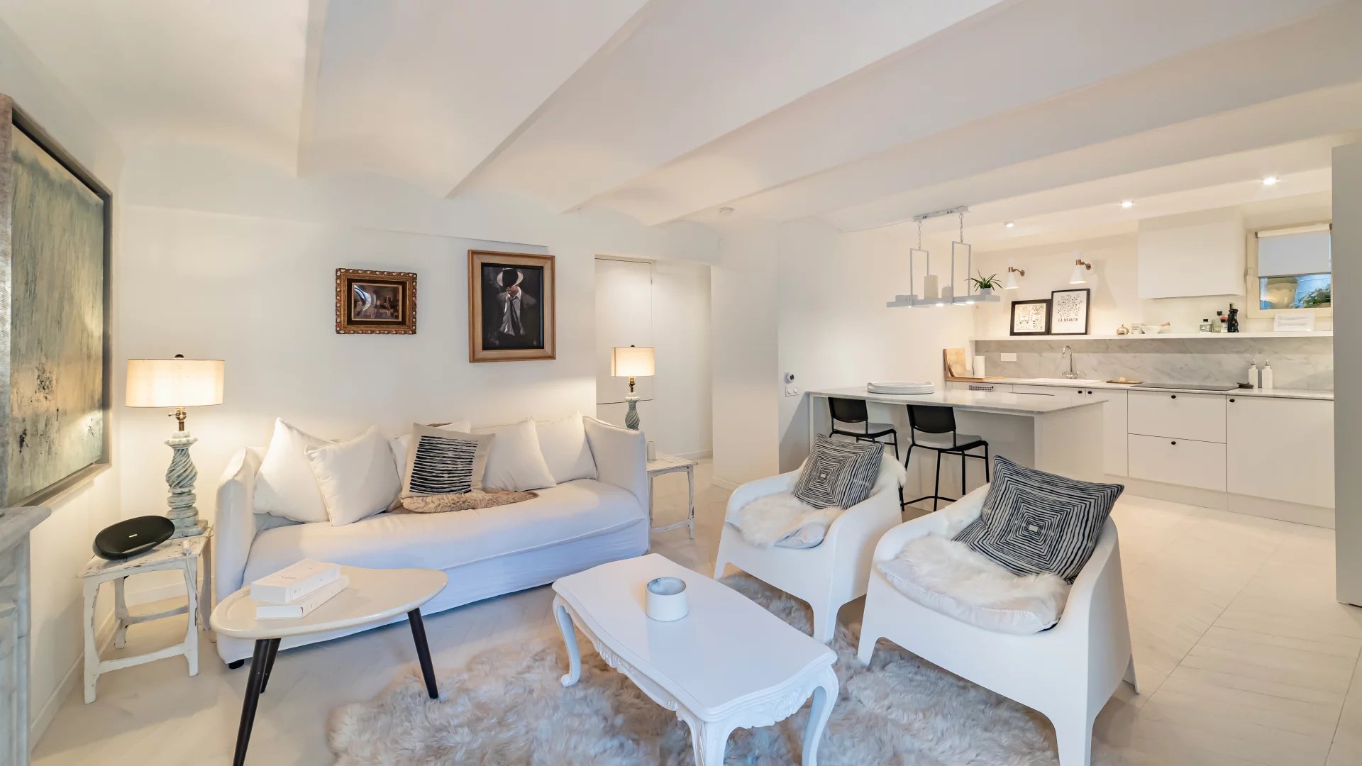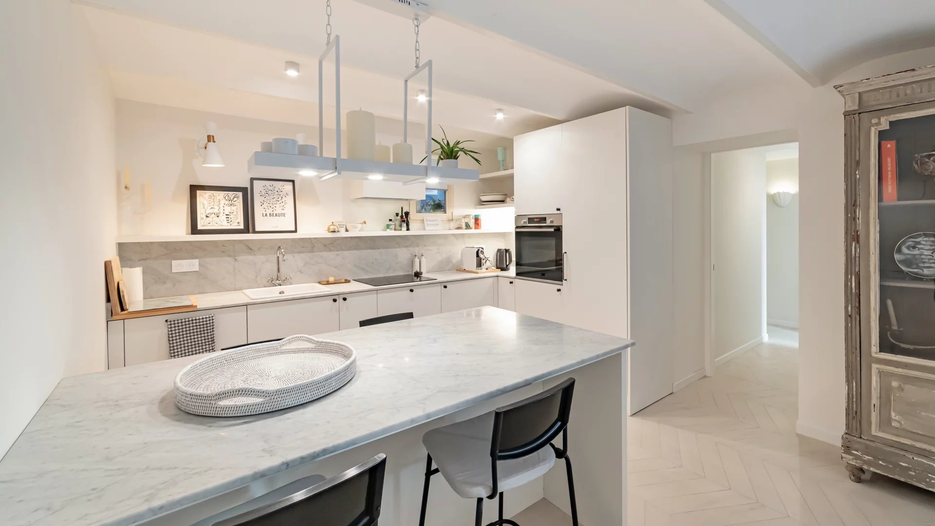 Magnificent, tastefully renovated apartment comprising a bright living room with fireplace and fitted kitchen, three bedrooms and three bathrooms.