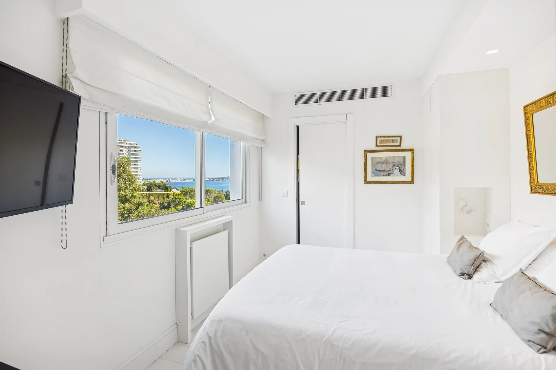 Nestled within a secure, high-end residence, this approximately 108 sqm apartment is a real gem. Located on the 5th floor, it offers breathtaking panoramic views of the Mediterranean Sea and the famous Lérins Islands.