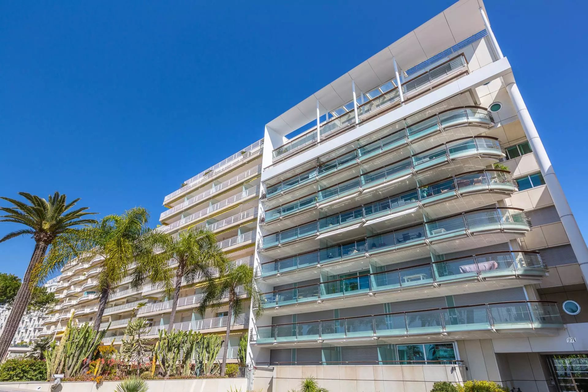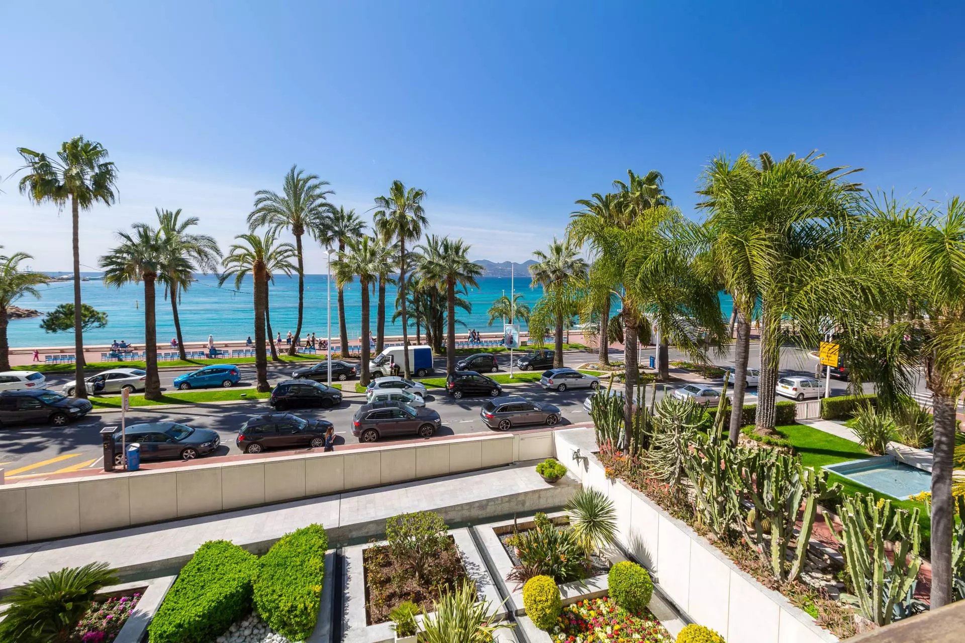 In one of the Croisette's most sought-after residences, this handsome two-bedroom apartment on the 3rd floor boasts a spacious terrace and lovely sea views.