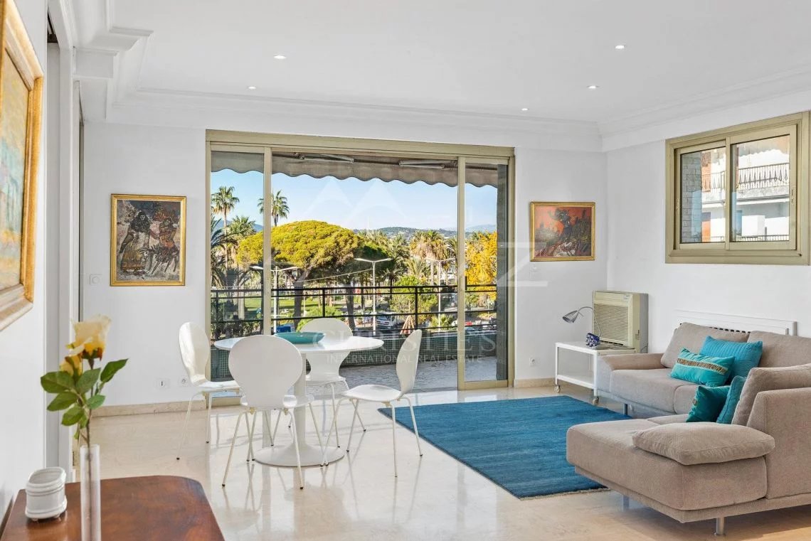 Very bright and spacious 4-room apartment in a luxury residence with guardian, facing Port Canto on the Croisette near all the shops. A beautiful entrance with plenty of storage space, opening onto a large living room of approximately 46m2 with open modern equipped kitchen. 2 beautiful bedrooms with bathrooms and balcony. An office that can be easily transformed into a 3rd bedroom. View of Port Canto and its soothing greenery as well as the sea from the living room and the large sunny terrace. A cellar in the basement and a nearby garage complete this apartment.