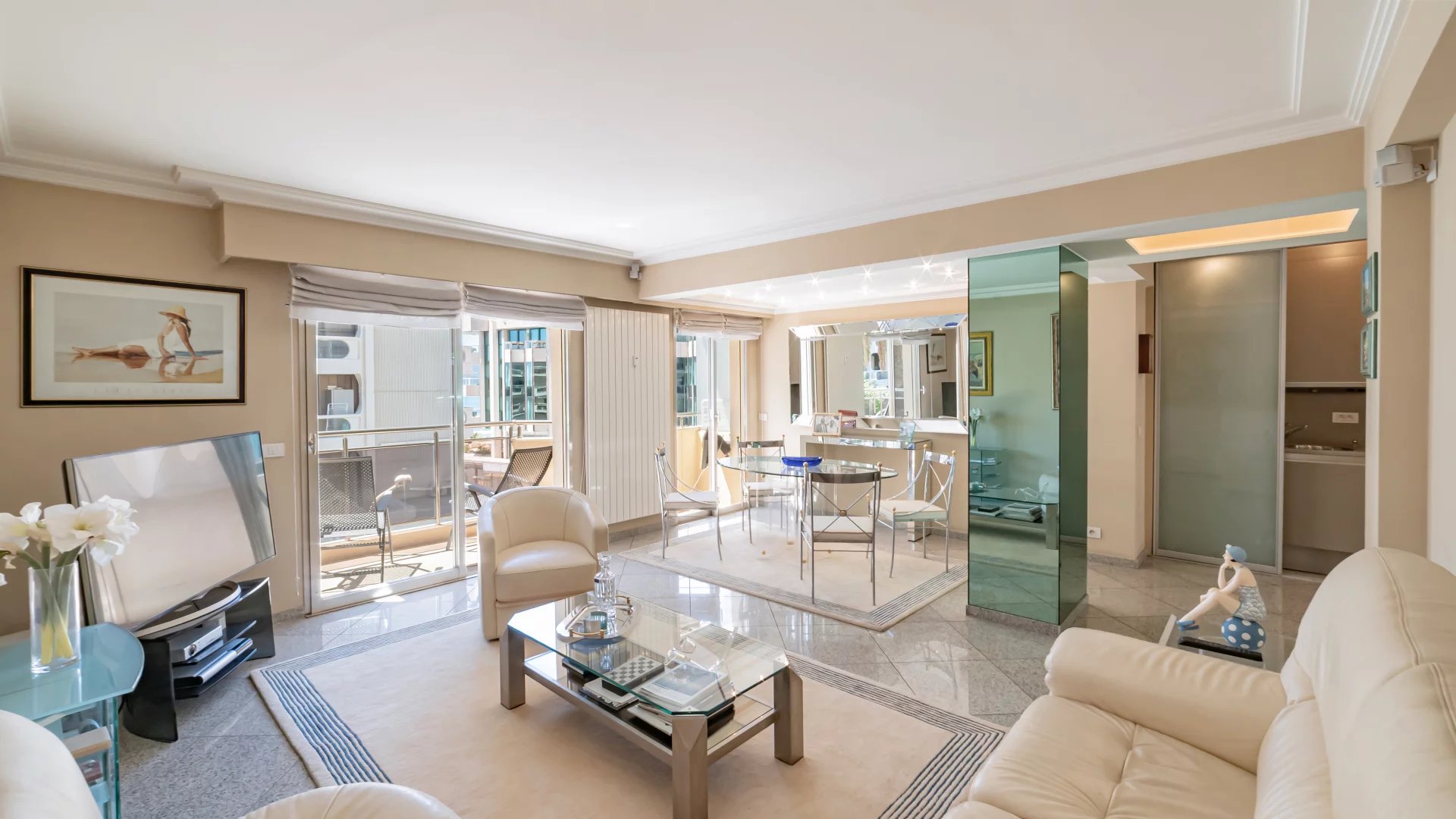 In the area called "la Banane", close to the Croisette, a most pleasant "pied-à-terre" of about 60 sq m with a glimpse of the sea.