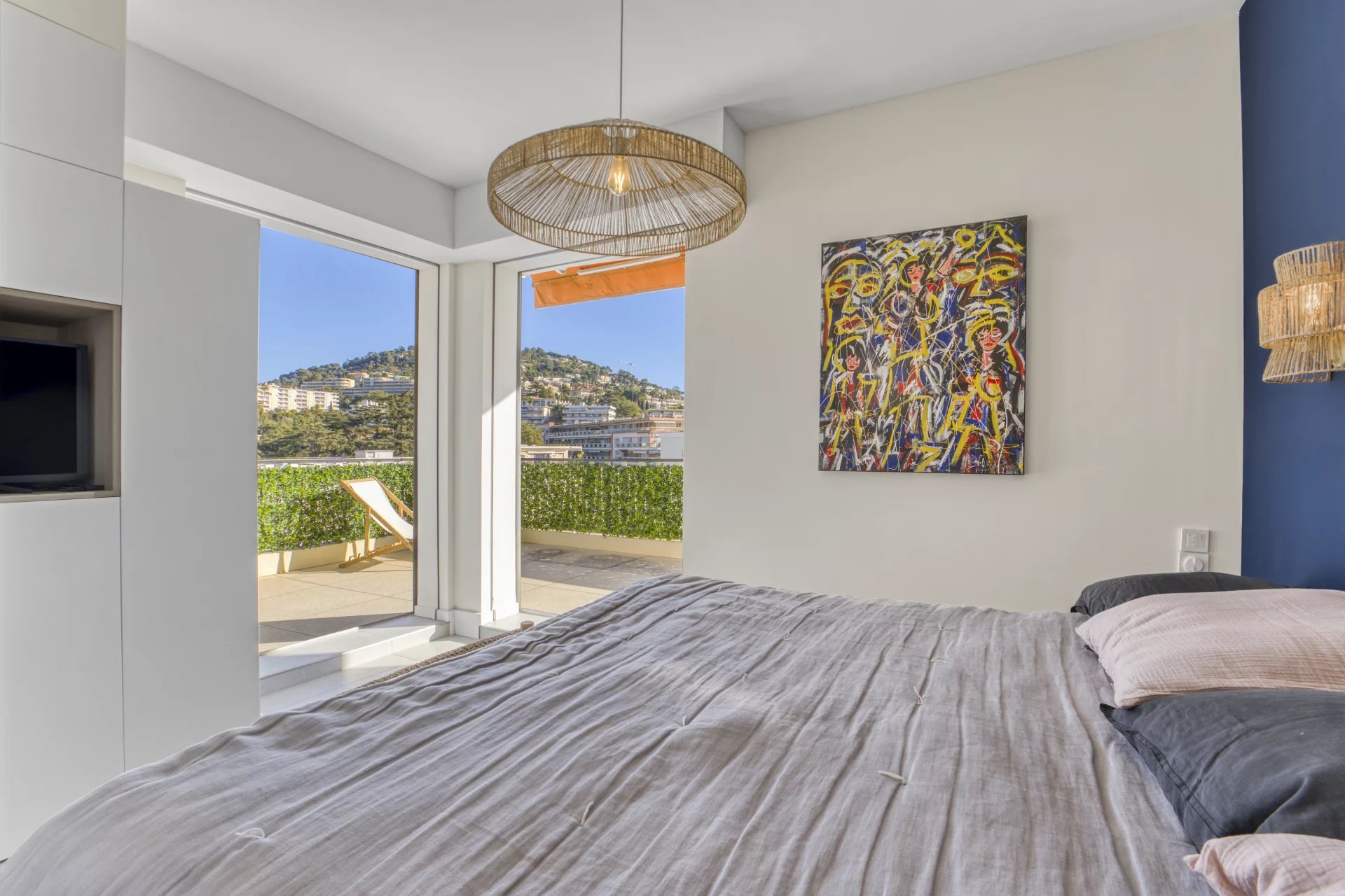 Magnificent 3-room apartment on the top floor of a luxury building, close to the Croisette beaches and downtown Cannes. Offering a 60 m² terrace, this outdoor space will enable you to enjoy multiple exposures and moments of outdoor relaxation.