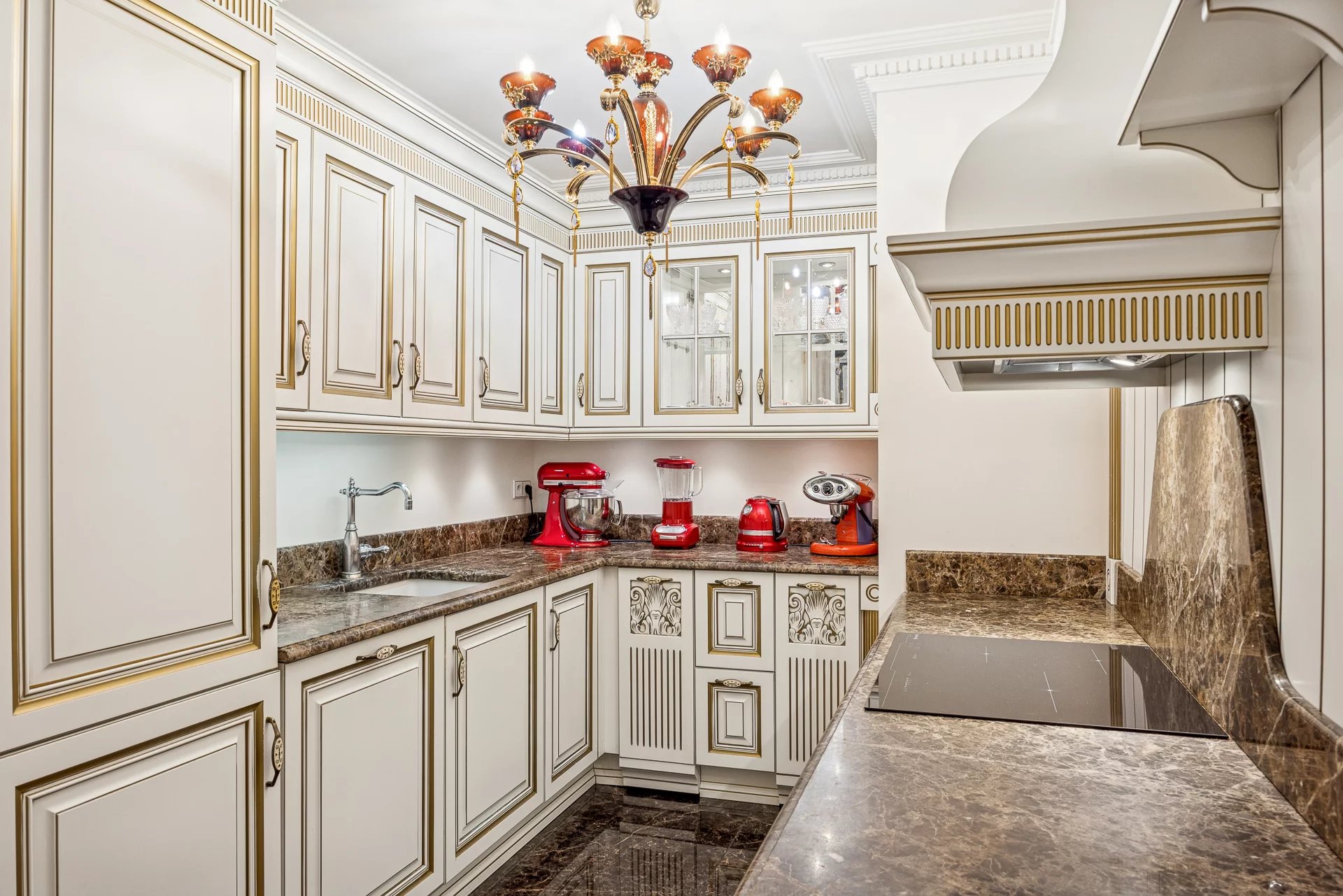 The apartment also includes three bedrooms, perfect for hosting family and friends, as well as two bathrooms. The parquet flooring and ceiling moldings attest to the meticulous finishes that characterize this exceptional property.