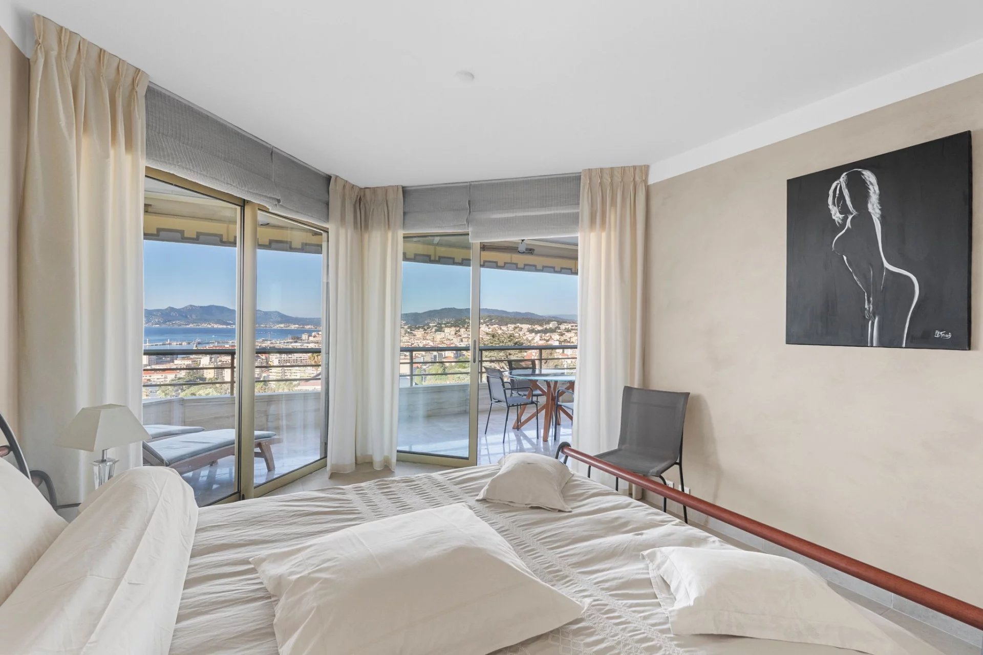 Learn moreNestled on a high floor, this bright apartment consists of a spacious living room with an open kitchen, offering a breathtaking unobstructed view. You will be charmed by the panoramic terrace overlooking the bay of Cannes and extending to the Esterel, a true haven of peace where you can relax.