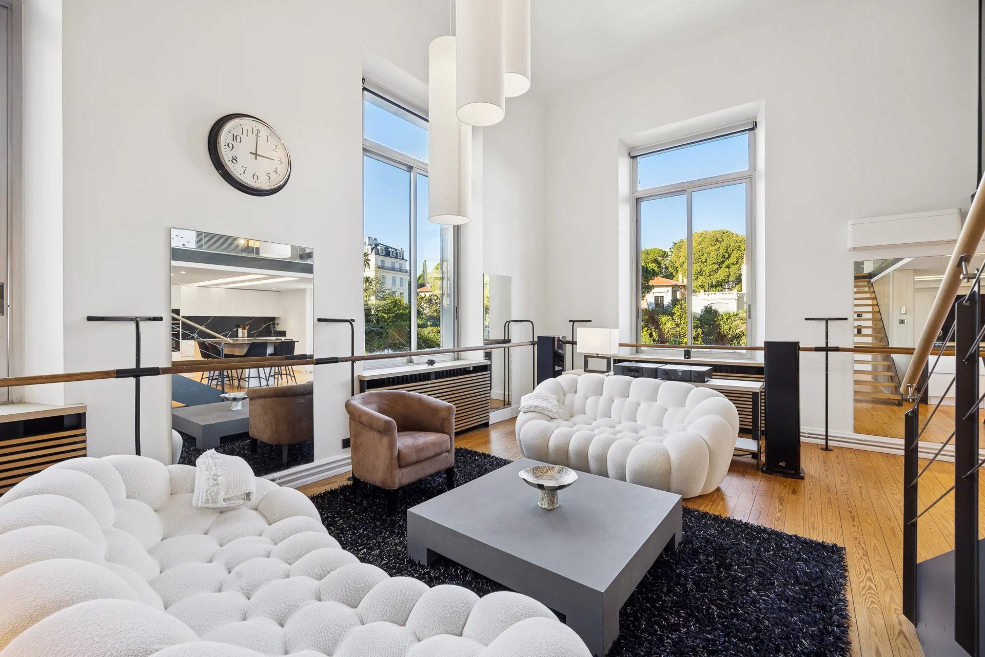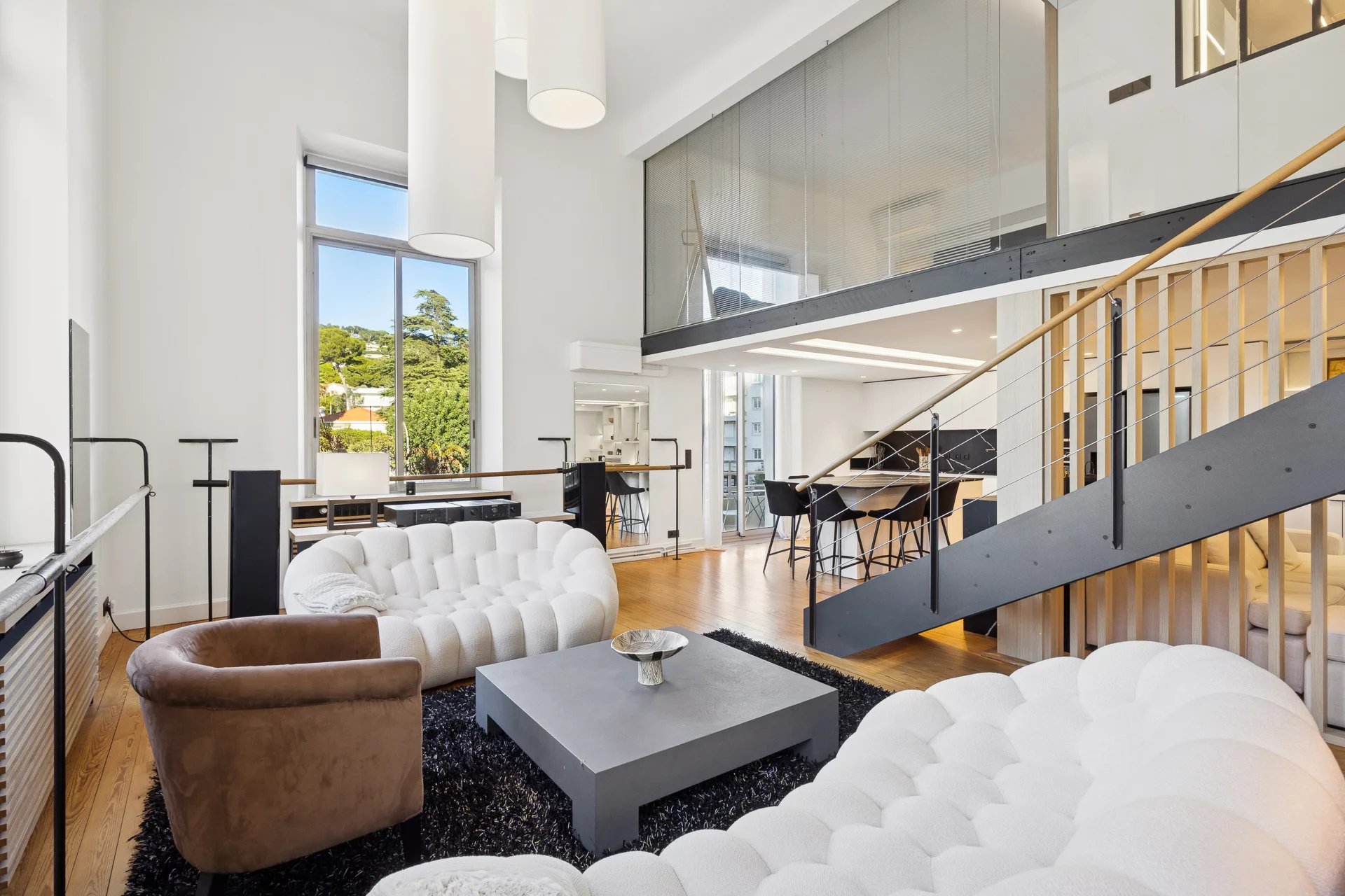 Discover this magnificent loft of 160 m 2, located in a historic district in Cannes Montfleury. Tastefully renovated in a contemporary style, this rare property offers impressive volumes thanks to a ceiling height of 7 meters, creating a spacious and bright atmosphere.
