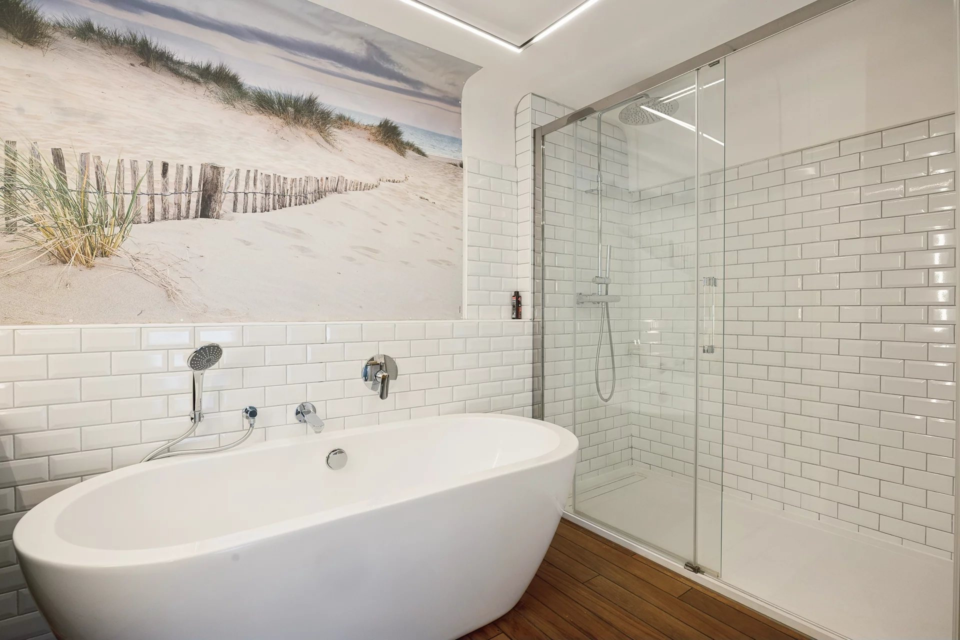 On the mezzanine floor, you will find a master suite with private shower room, as well as a second bedroom, accompanied by a bathroom/shower for more comfort.
