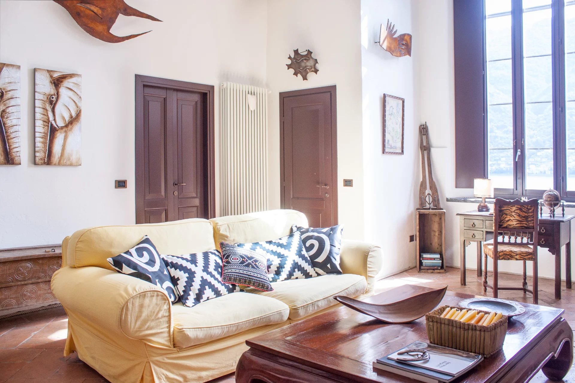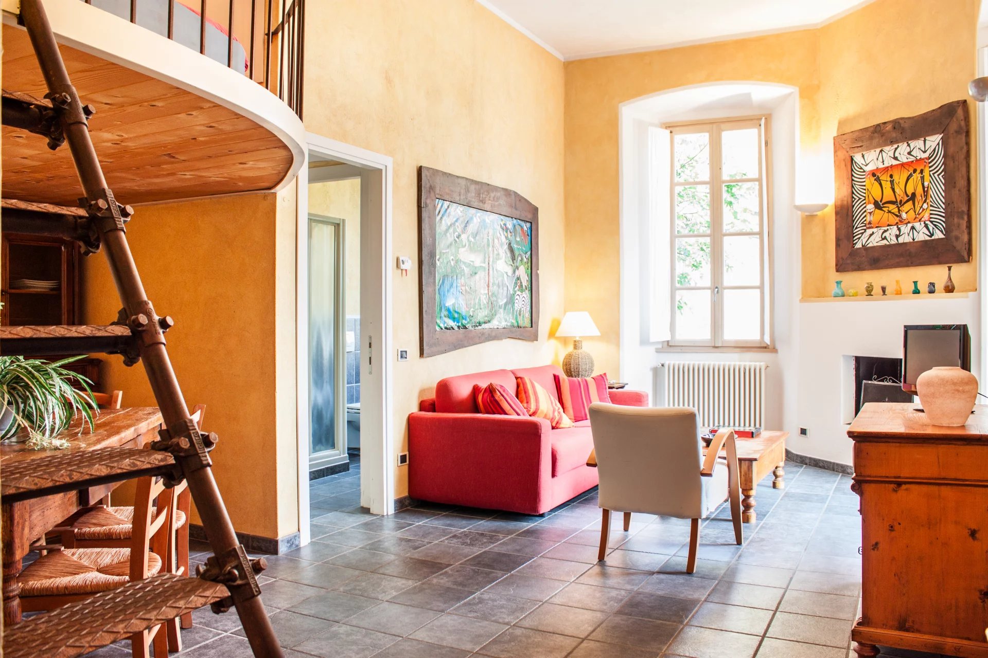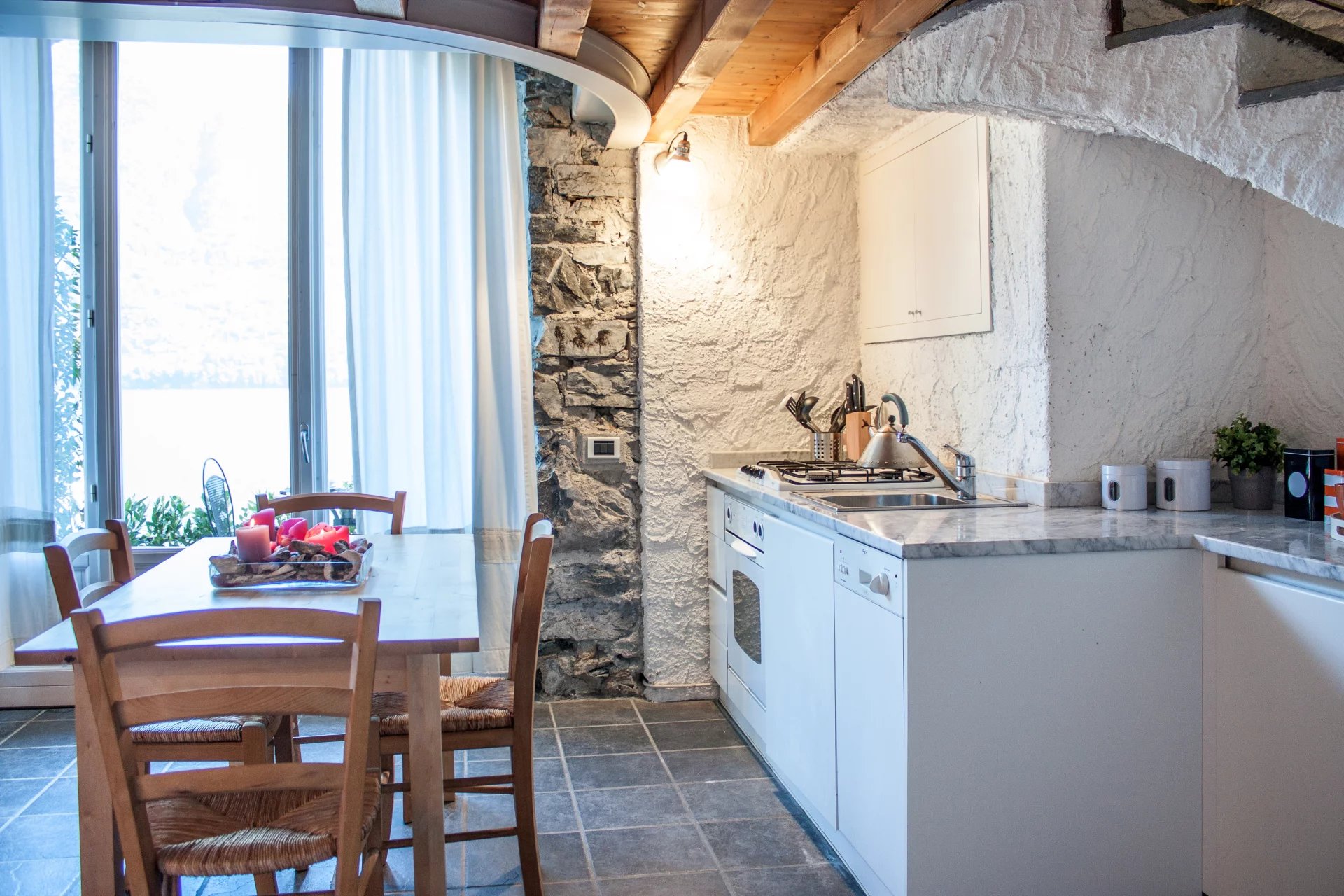 The Villa, La Filanda, is a former silk factory, pieds dans l'eau on the western shore of Lake Como. It is located in Brienno, a small village of Celtic origin. It is an ancient silk spinning mill dating back to the 17th century, beautifully and carefully renovated and transformed into a modern and welcoming place. A large and modern elevator at the level of the main street and of the garages connects the villa with one more large building that integrates the property. It was the site where families of filandiers used to live. This beautiful and ancient building, with its balconies facing the picturesque small pier of the village, has been recently refurbished and divided into 11 independent apartments with all modern facilities for a total of circa 700mq.