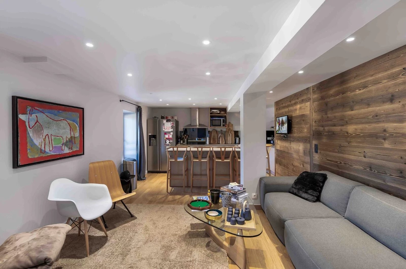 In the heart of the Espace Diamant, this five-bedroom flat with a floor area of 122.21 sq.m is ideally located at the foot of the slopes and the Crest-Voland ski lifts, close to all amenities. The perfect place to discover the resort's 190 km of pistes. This flat, completely renovated in the spirit of the Alps, is located on the 1st floor of a human-scale residence and comprises four bedrooms, a 50 sq.m living space with a fully-equipped open-plan kitchen, an entrance hall with ski room and storage space.