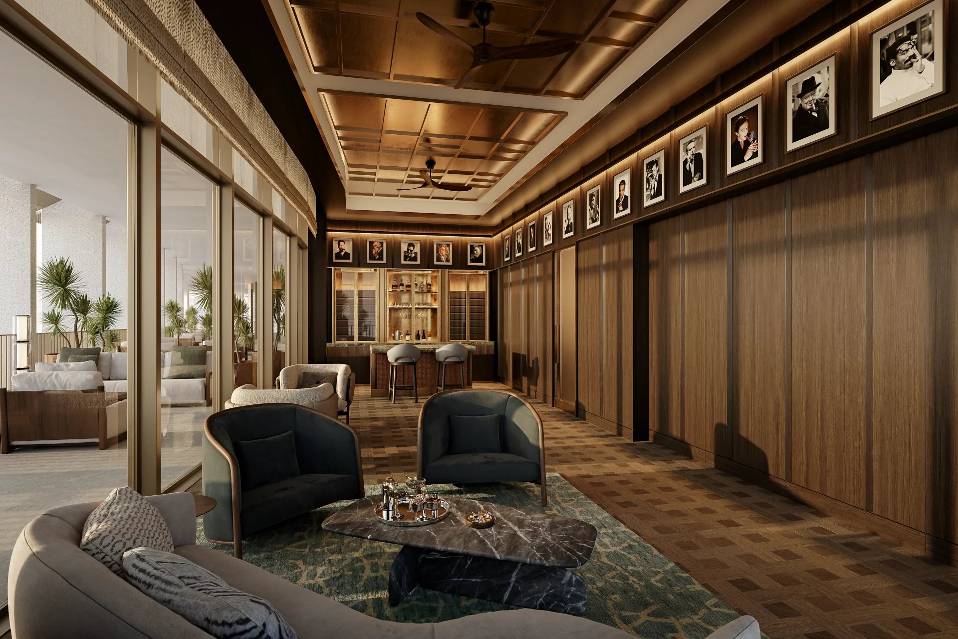 * Dining and living areas with expansive views