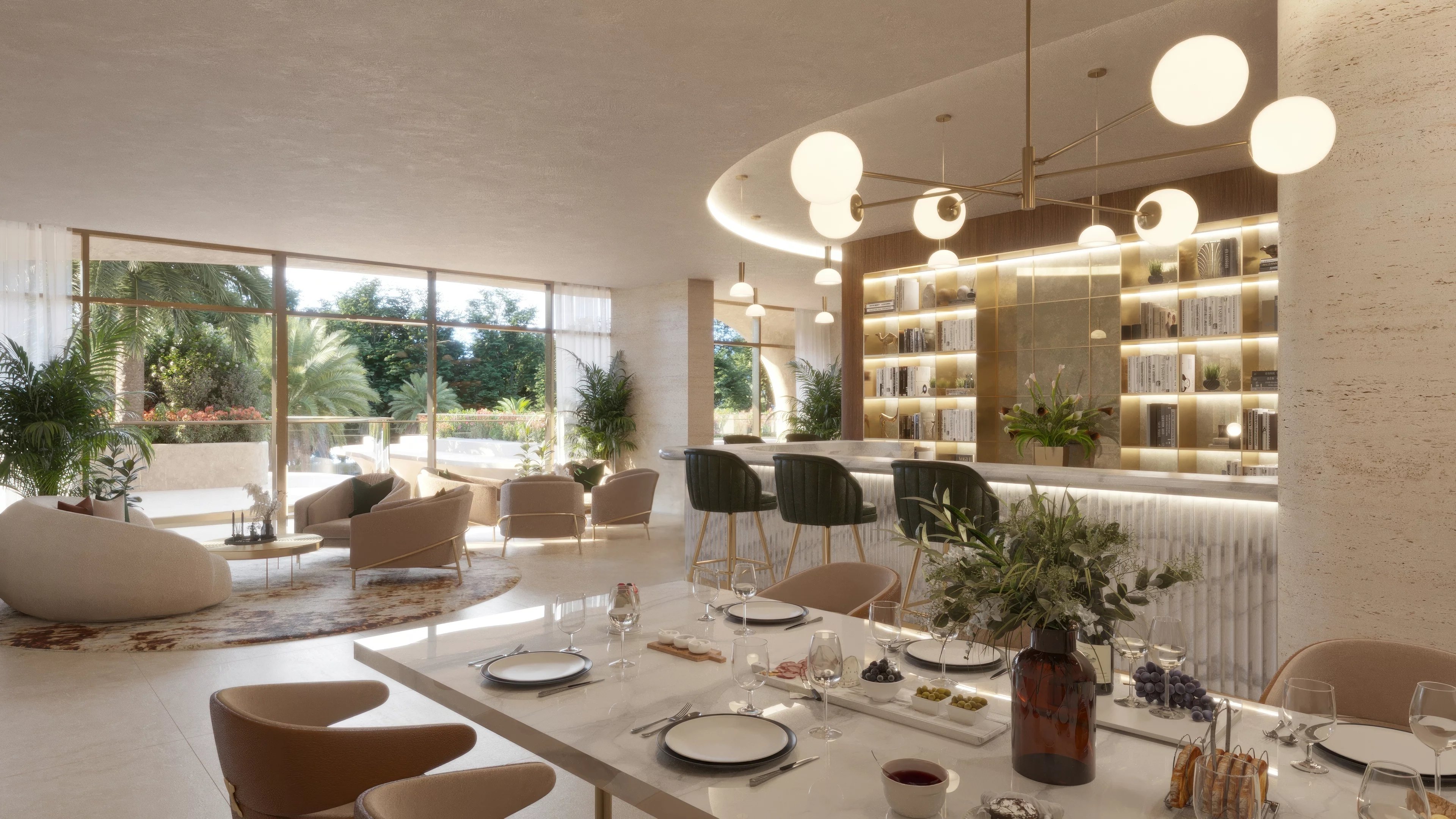 Step outside to your expansive private terrace, perfect for entertaining, featuring multiple lounge and dining zones. Beyond, a private pool anchors the outdoor space, surrounded by greenery and relaxation areas that are ideal for hosting or unwinding in total privacy.