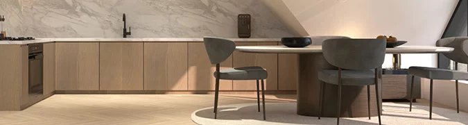 The striking kitchens feature Italian marble worktops, alongside top-of-the range appliances and integrated lighting, to give a modern, yet homely aesthetic