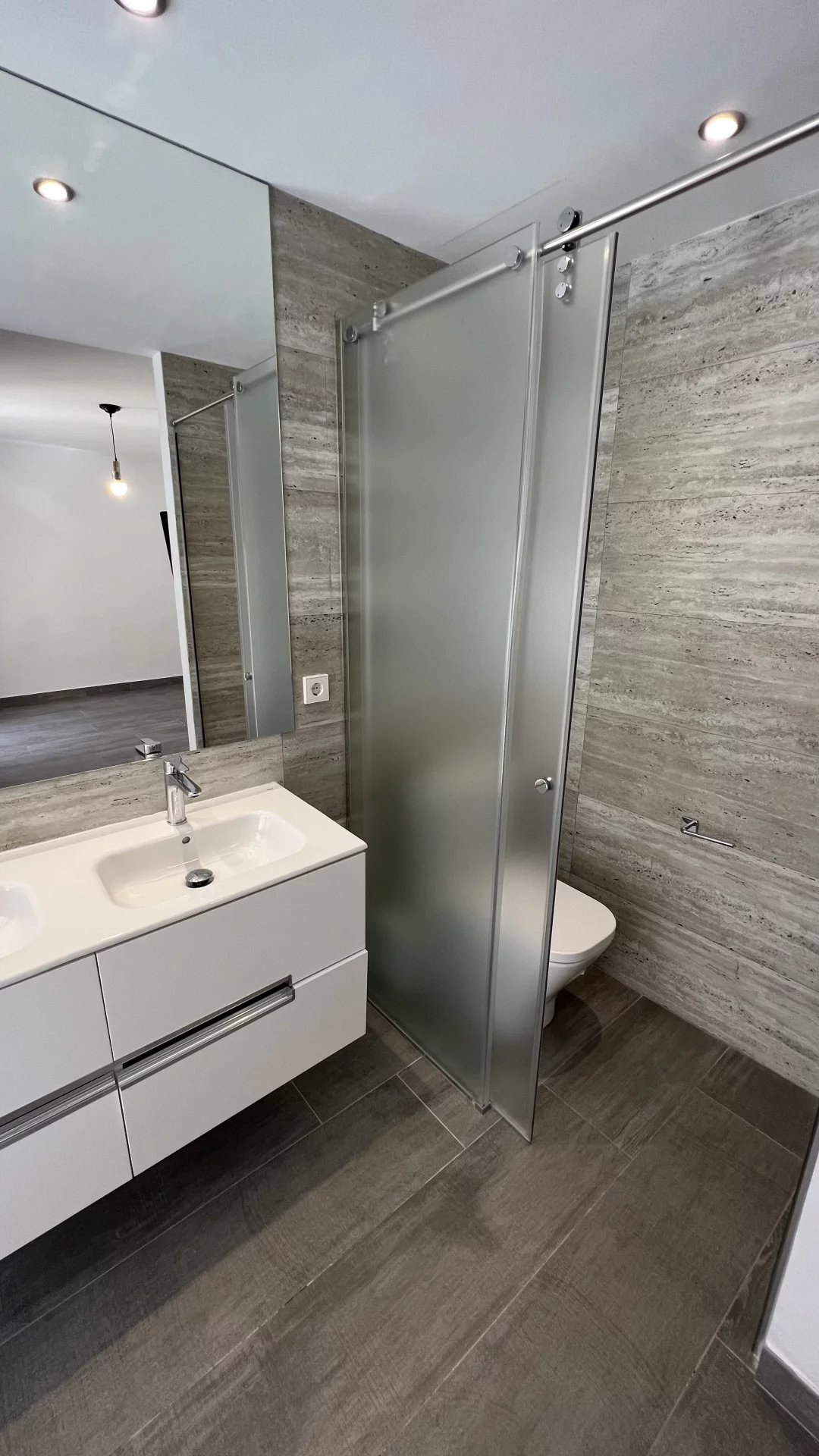The layout of the property has been carefully designed, starting with an elegant entrance hall that perfectly separates the day and night areas. In the day area, there is a bright and spacious living-dining room that opens onto a spectacular 52 m² terrace with 180° panoramic sea views, the perfect place to enjoy the Mediterranean landscape and climate. The generously sized kitchen is equipped with a table for informal meals and features a large, independent laundry room.