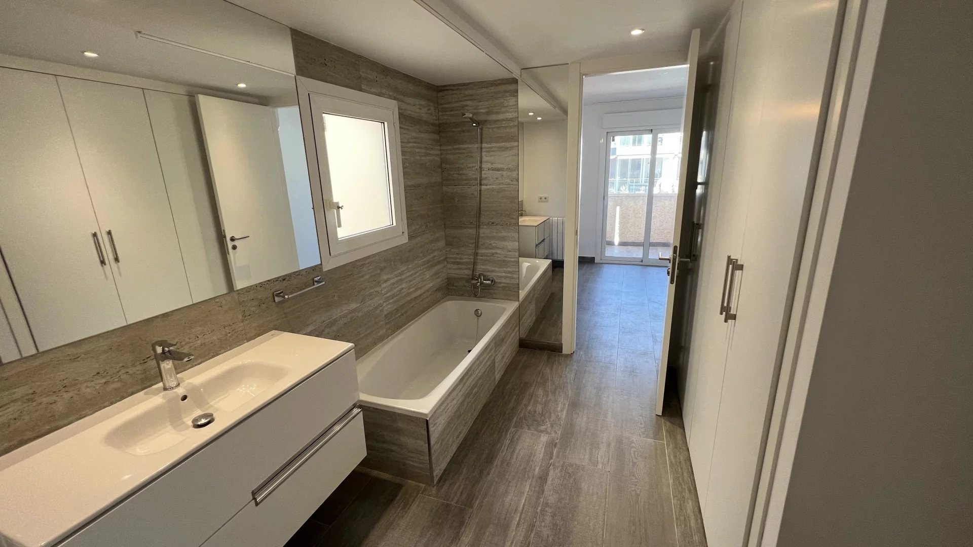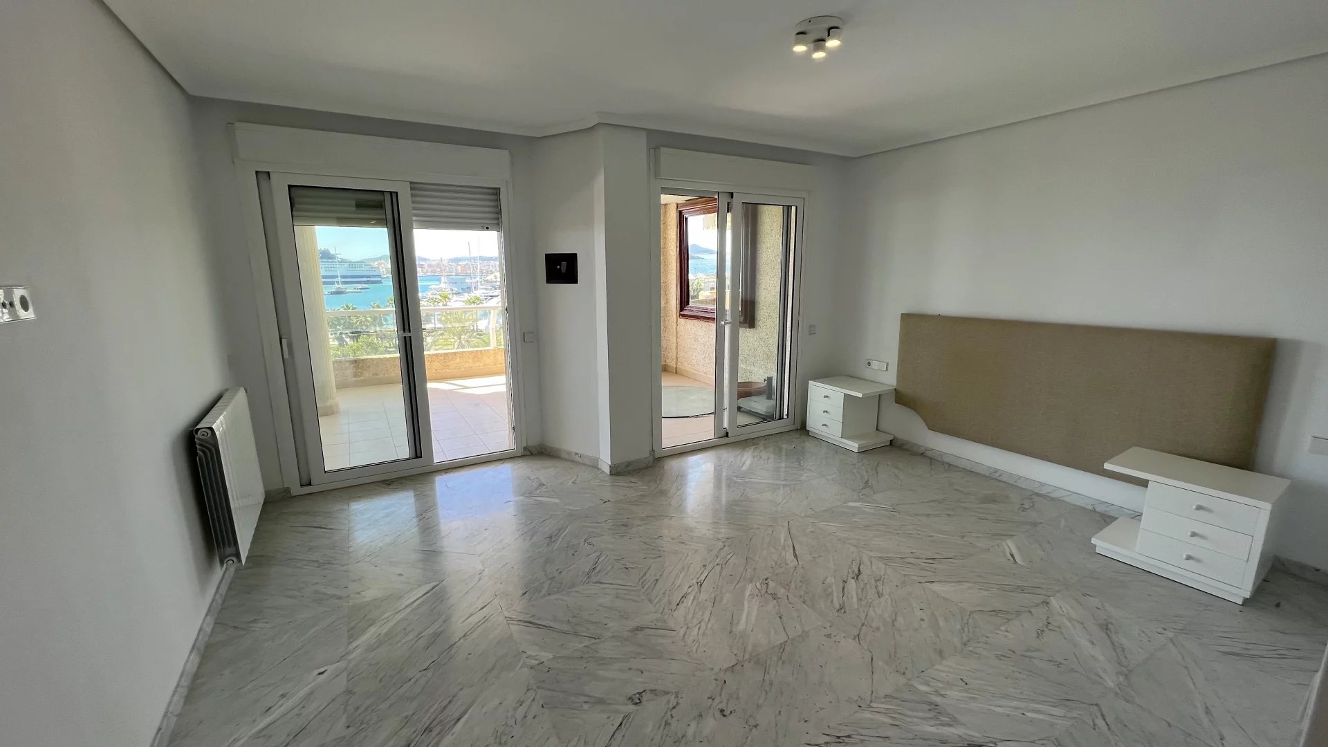 The night area offers four en-suite bedrooms. The master suite enjoys exceptional views of Dalt Vila, while two of the three additional bedrooms have charming private terraces overlooking Botafoch and Talamanca, adding a touch of exclusivity and privacy. In addition, the apartment includes a service room with a full bathroom, ideal for staff or as additional space.