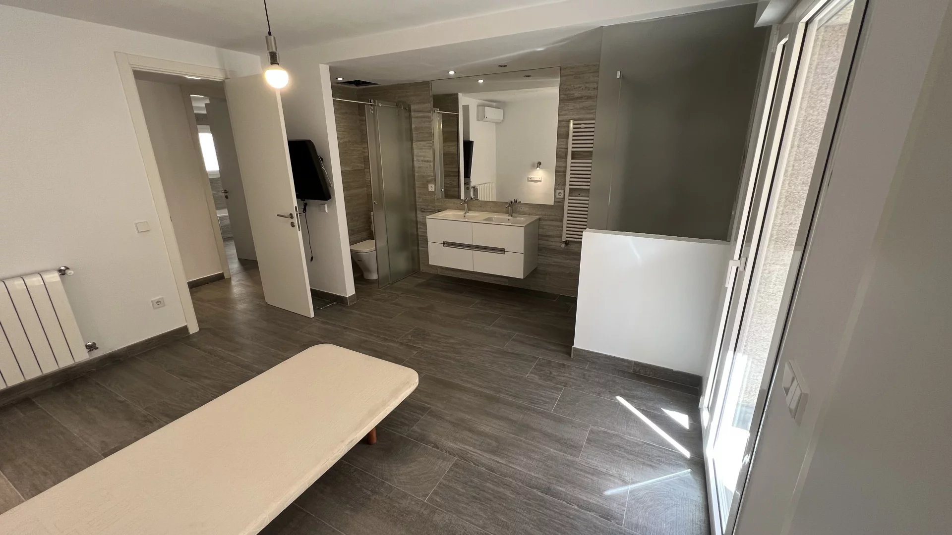 Learn moreThe layout of the property has been carefully designed, starting with an elegant entrance hall that perfectly separates the day and night areas. In the day area, there is a bright and spacious living-dining room that opens onto a spectacular 52 m² terrace with 180° panoramic sea views, the perfect place to enjoy the Mediterranean landscape and climate. The generously sized kitchen is equipped with a table for informal meals and features a large, independent laundry room.