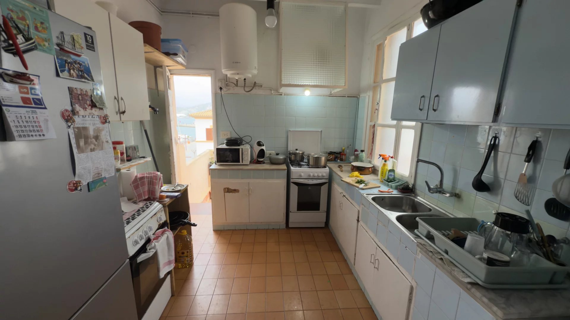 The current layout includes three bedrooms, a full bathroom, a spacious and bright living-dining room, and an incredible 111 sqm terrace with panoramic views of the port and the Mediterranean Sea. This kind of outdoor space is rare in such a prime location, perfect for creating a private open-air oasis.
