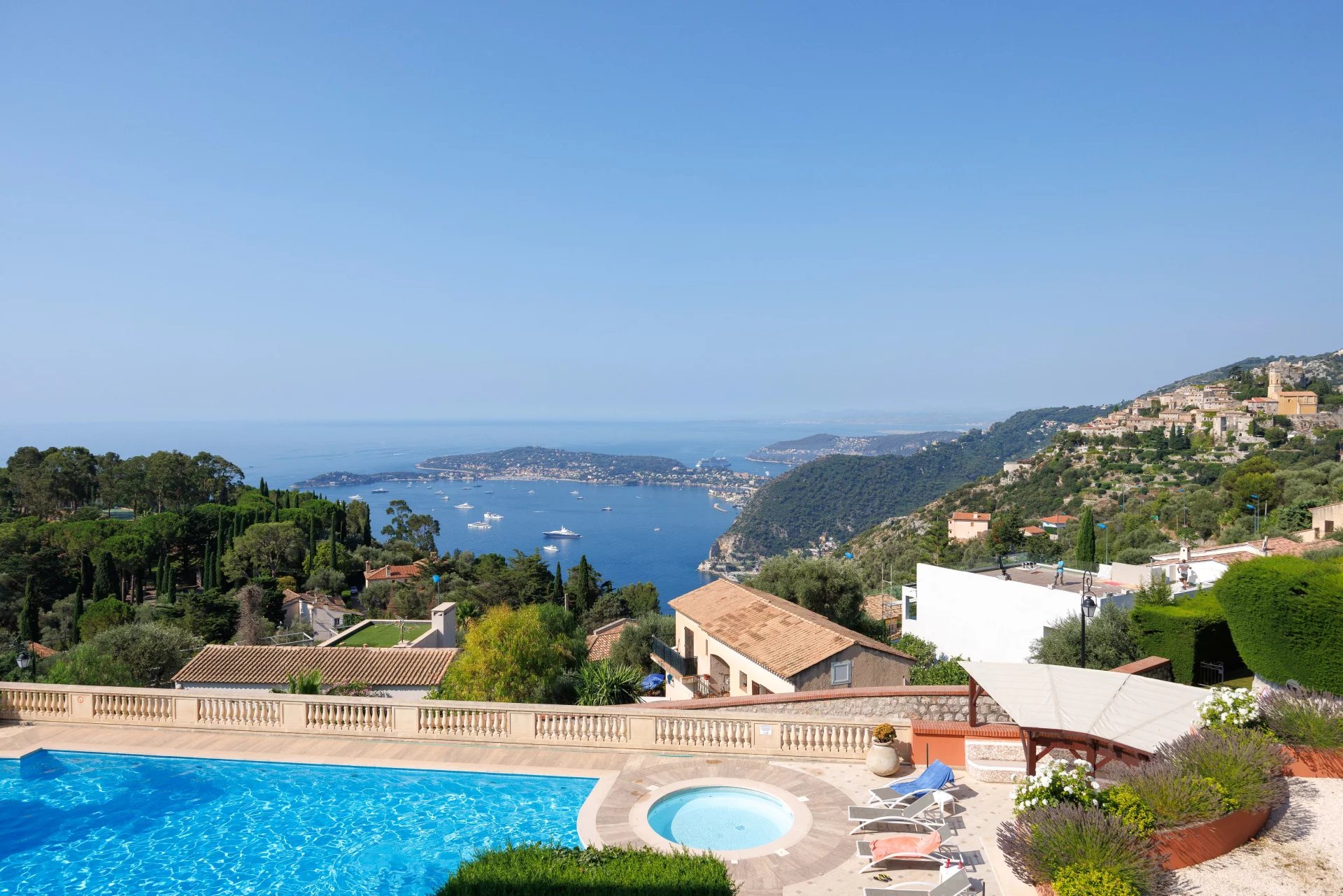 You'll never tire of the view over the picturesque village of Èze, with Saint-Jean-Cap-Ferrat, the Mediterranean Sea, Nice, Cap d'Antibes and the Esterel massif in the background.