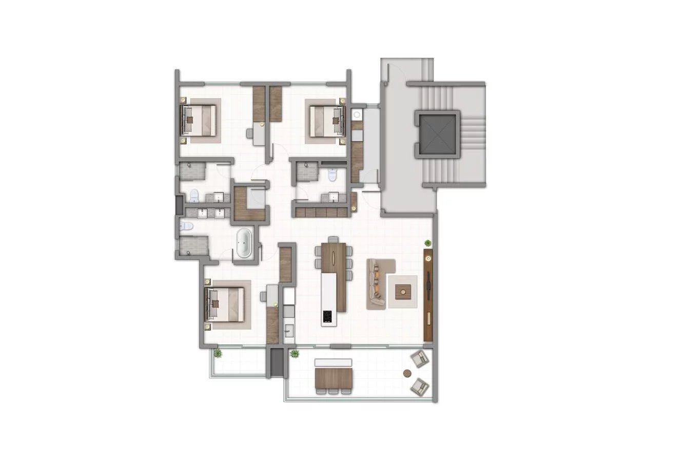 The 2- and 3-bedroom apartments, semi-furnished with high-end finishes, are designed for absolute comfort.