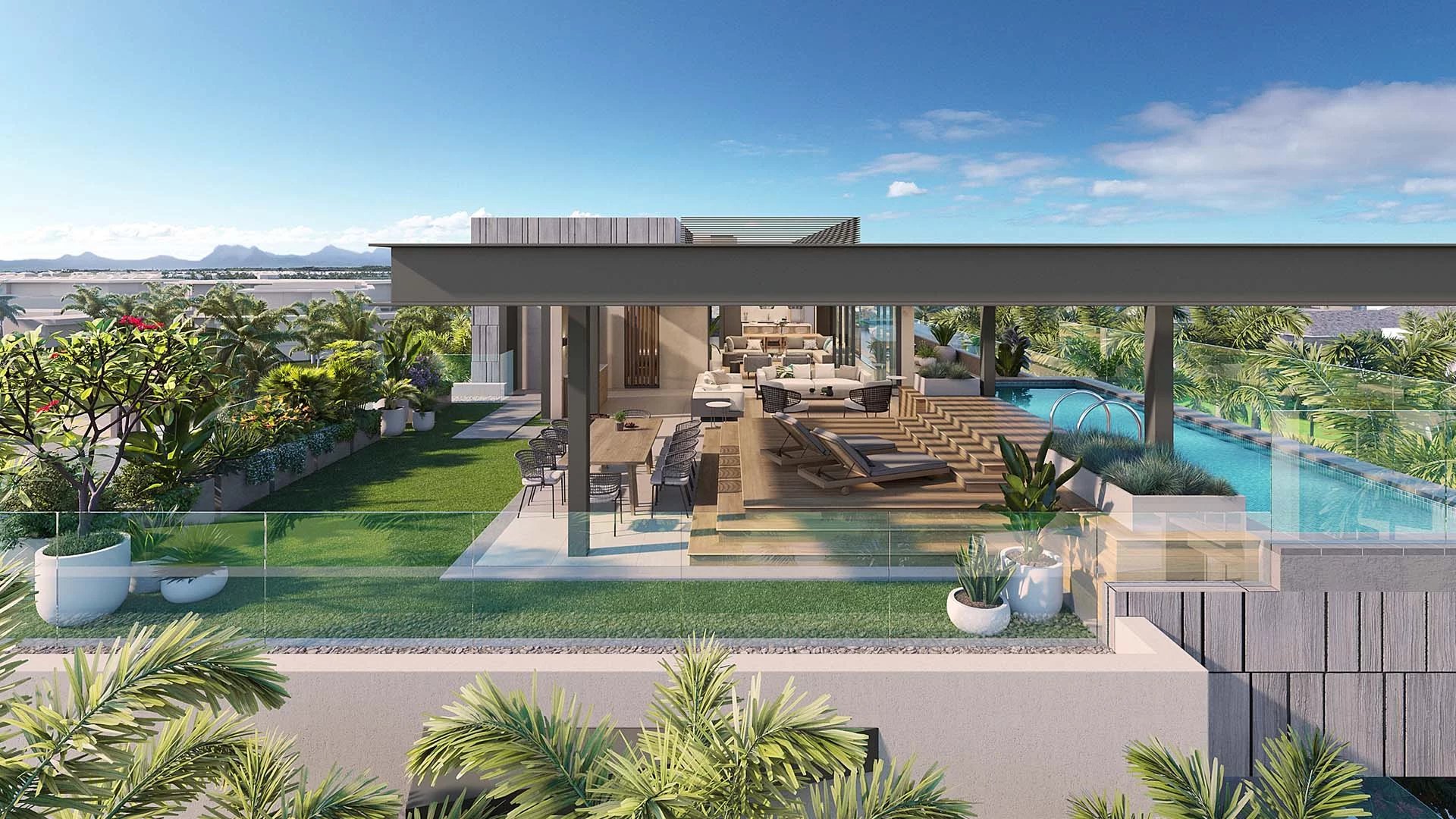 Learn moreWith expansive living spaces and panoramic views to Grand-Bay and the sea, these beautifully designed “Villas in the Sky” boast a wealth of bespoke features. Bright and airy rooms offer spectacular views, while the living areas open onto a large terrace with a breathtaking pool. Paying homage to prime Mauritian indoor/outdoor living, this sensational private realm offers the finest in luxury elevated living.
