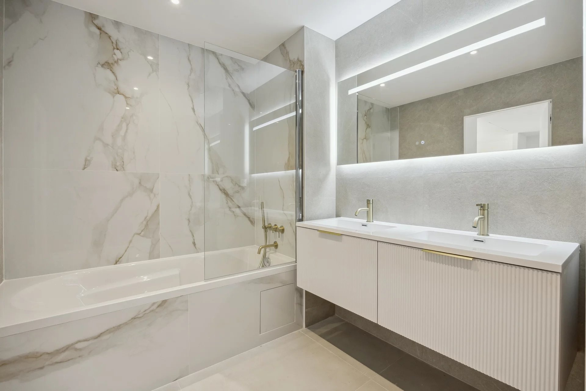 The apartment also consists of an elegant master suite, decorated with a dressing room and a private bathroom with sea view. You will also find a second bedroom with an en-suite shower room, as well as a third room ideal to accommodate your guests or serve as an office. An additional shower room and a laundry room complete this functional space.