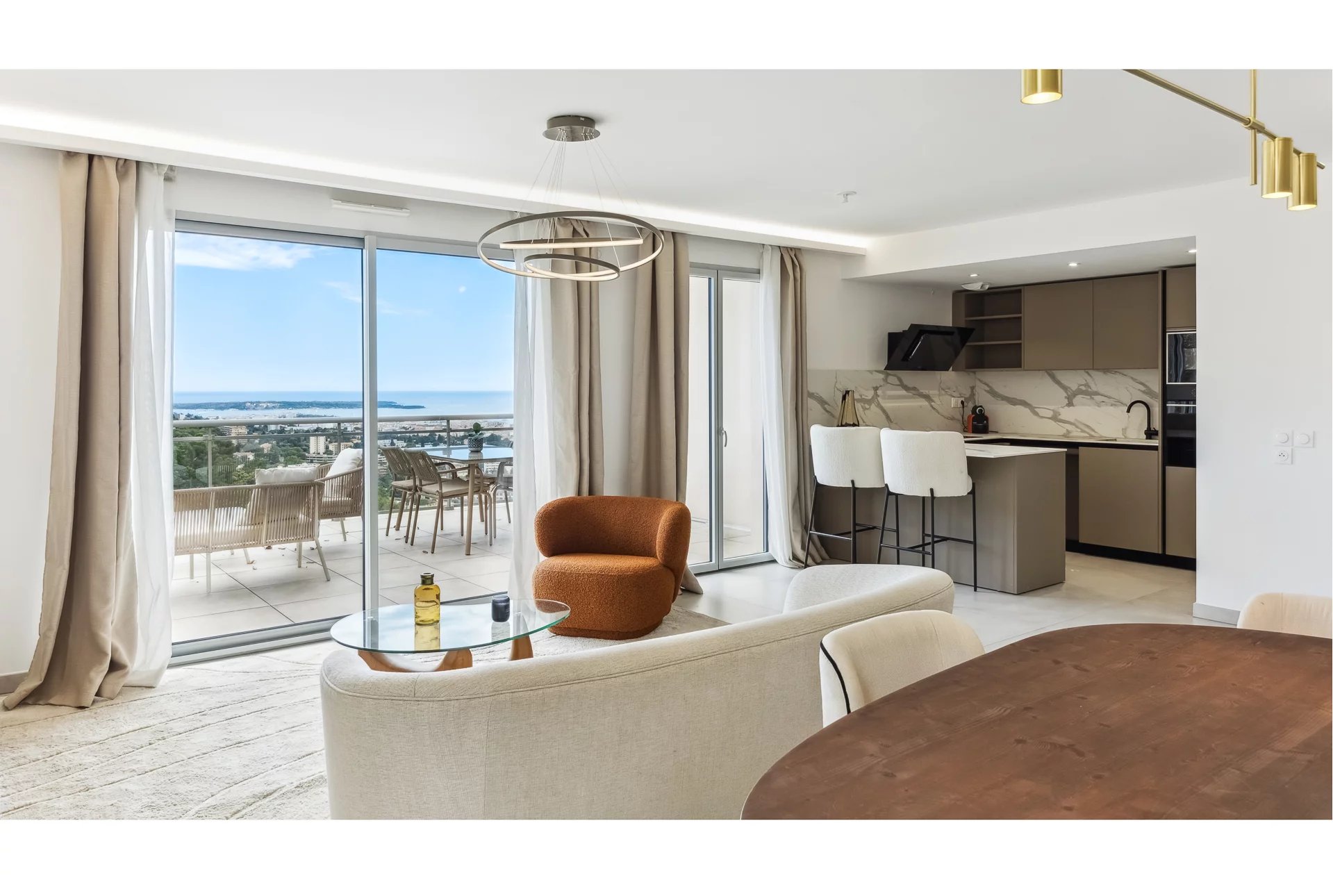 Discover this bright 4-room apartment, located on the top floor in the hills of Cannet. This property offers beautiful volumes. At your entrance, you will be greeted by a spacious hall that leads to a large living room of 40 m2 with a functional and modern open kitchen.