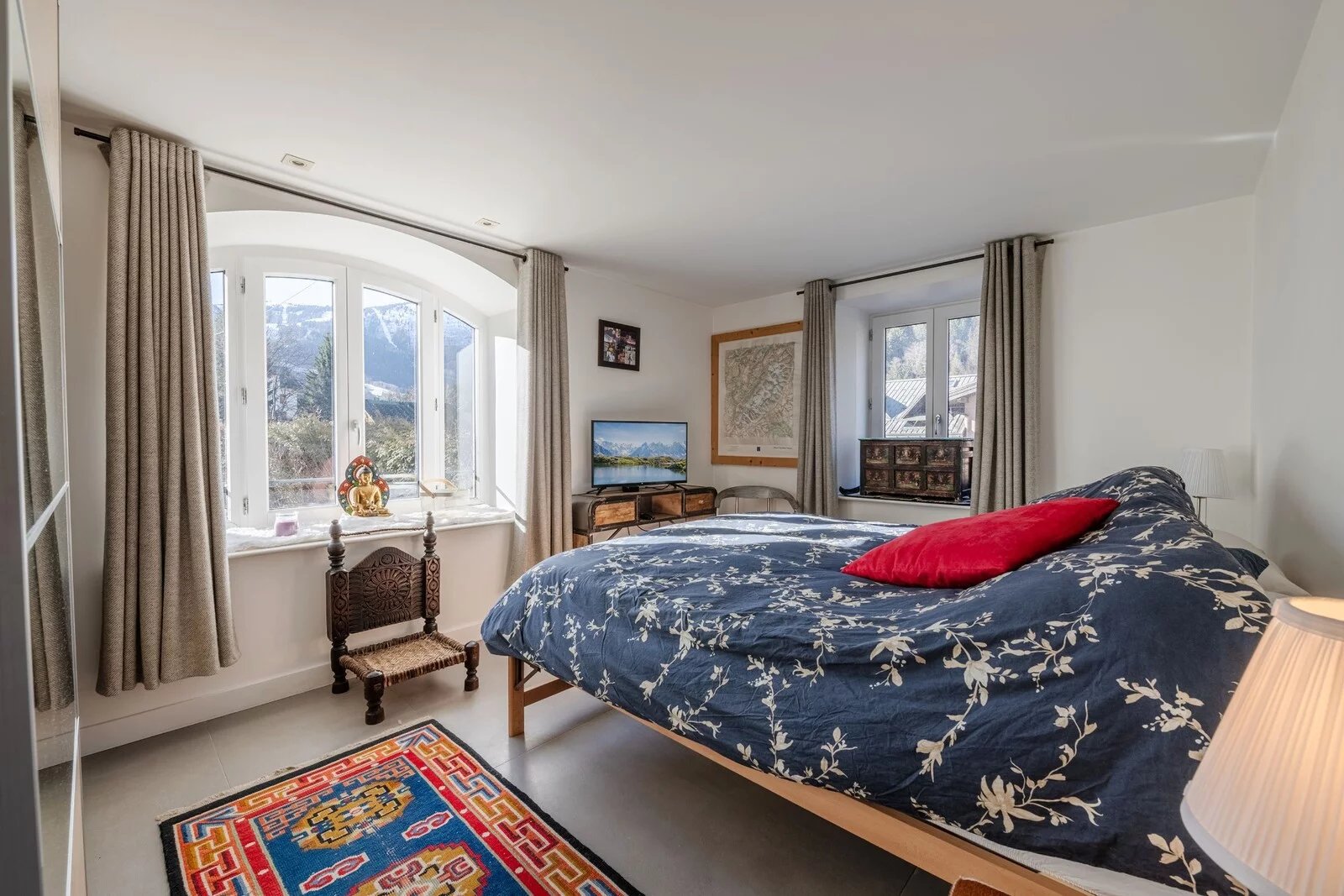 Ideally located on the garden level, the apartment offers lovely views of the surrounding mountains.