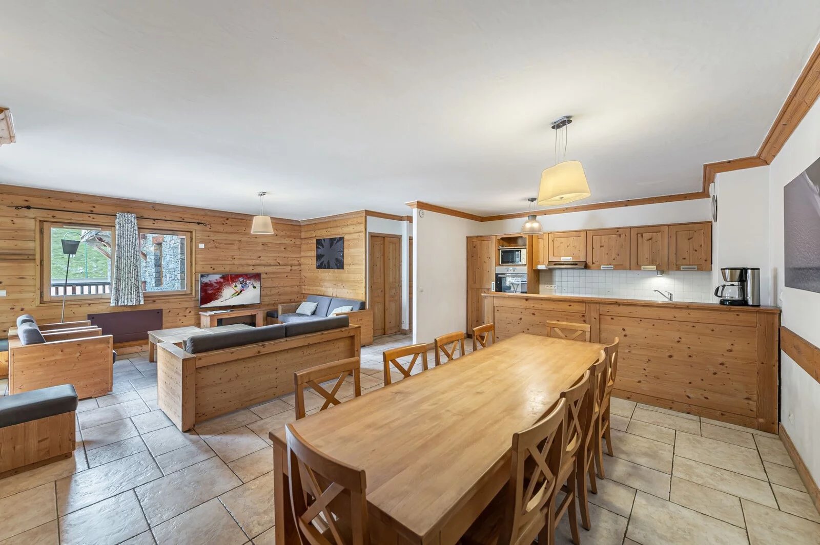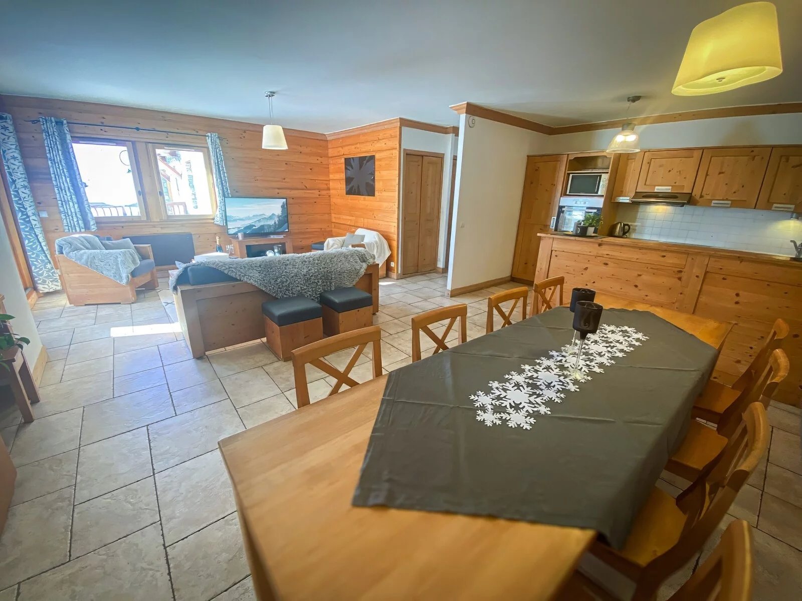 Built in 2007 - in a residence which respects the codes of Alpine architecture - it is located at the foot of the slopes in a quiet area close to shops. The 6 rooms are distributed between an entrance with storage, a kitchen open to a spacious living room/living room with a south-west facing terrace of approximately 40 sq.m, five bedrooms (three of which have a shower room), a bathroom. bath and sauna.