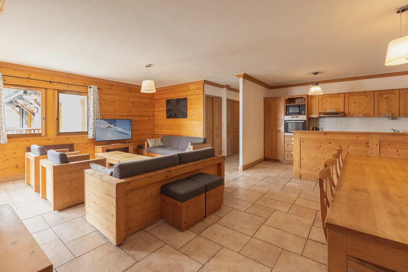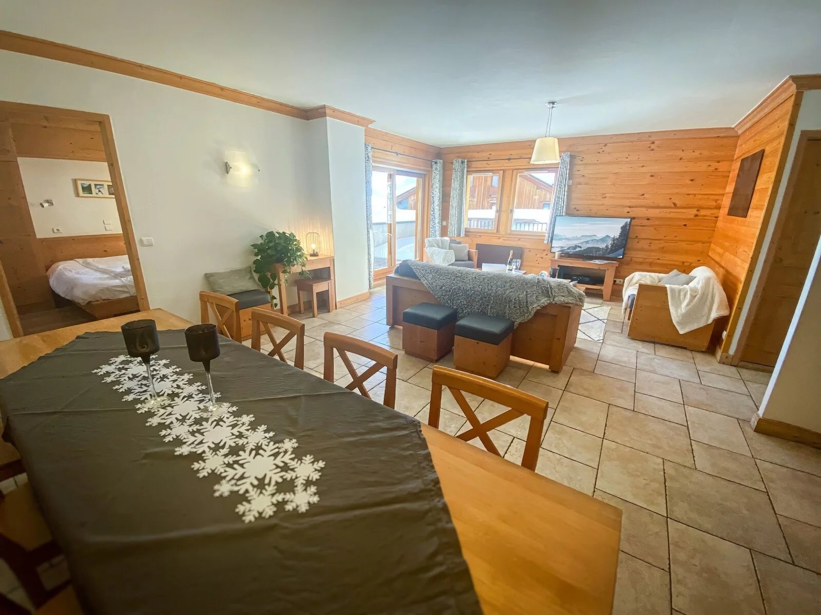 Learn moreBuilt in 2007 - in a residence which respects the codes of Alpine architecture - it is located at the foot of the slopes in a quiet area close to shops. The 6 rooms are distributed between an entrance with storage, a kitchen open to a spacious living room/living room with a south-west facing terrace of approximately 40 sq.m, five bedrooms (three of which have a shower room), a bathroom. bath and sauna.