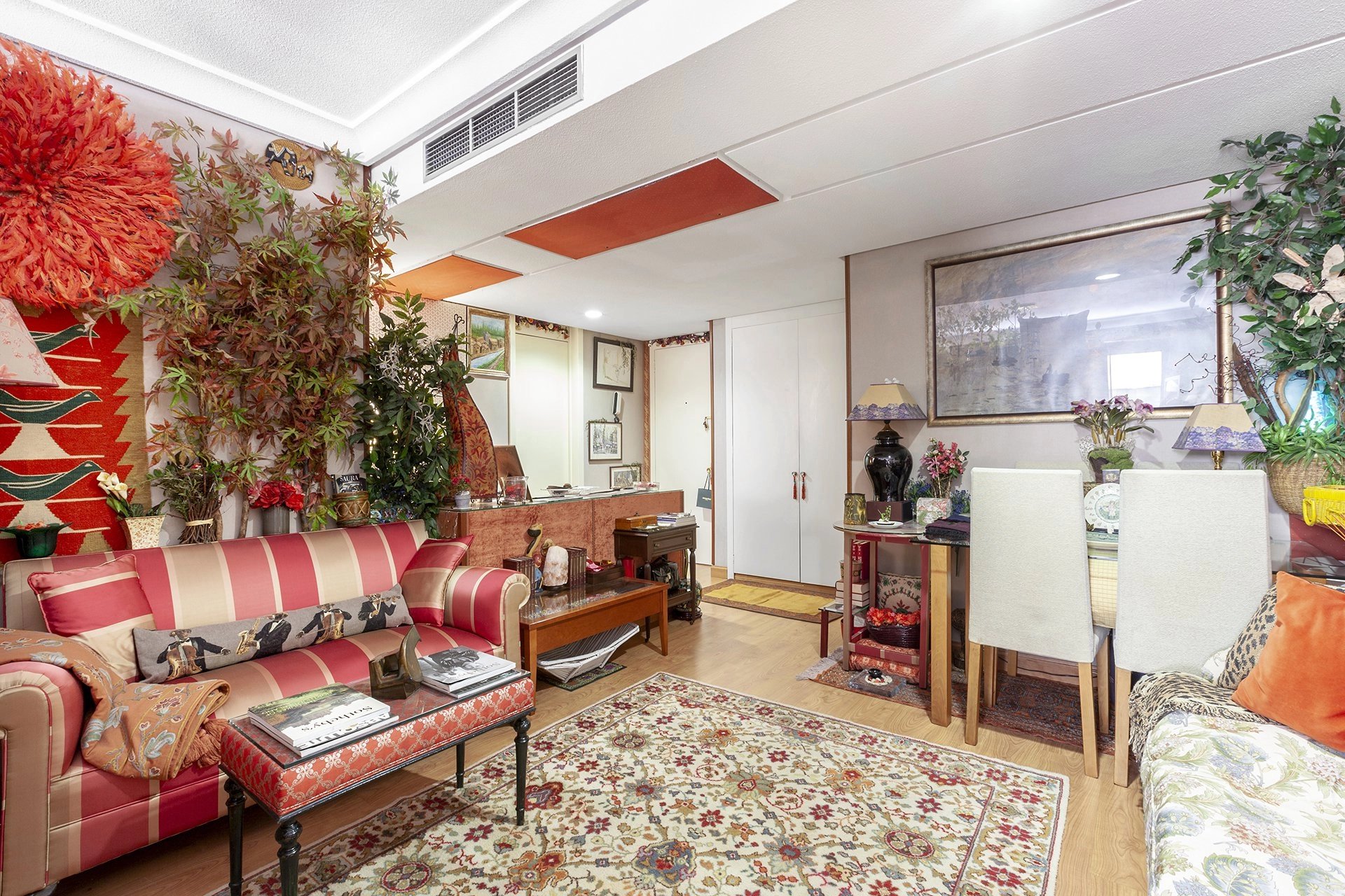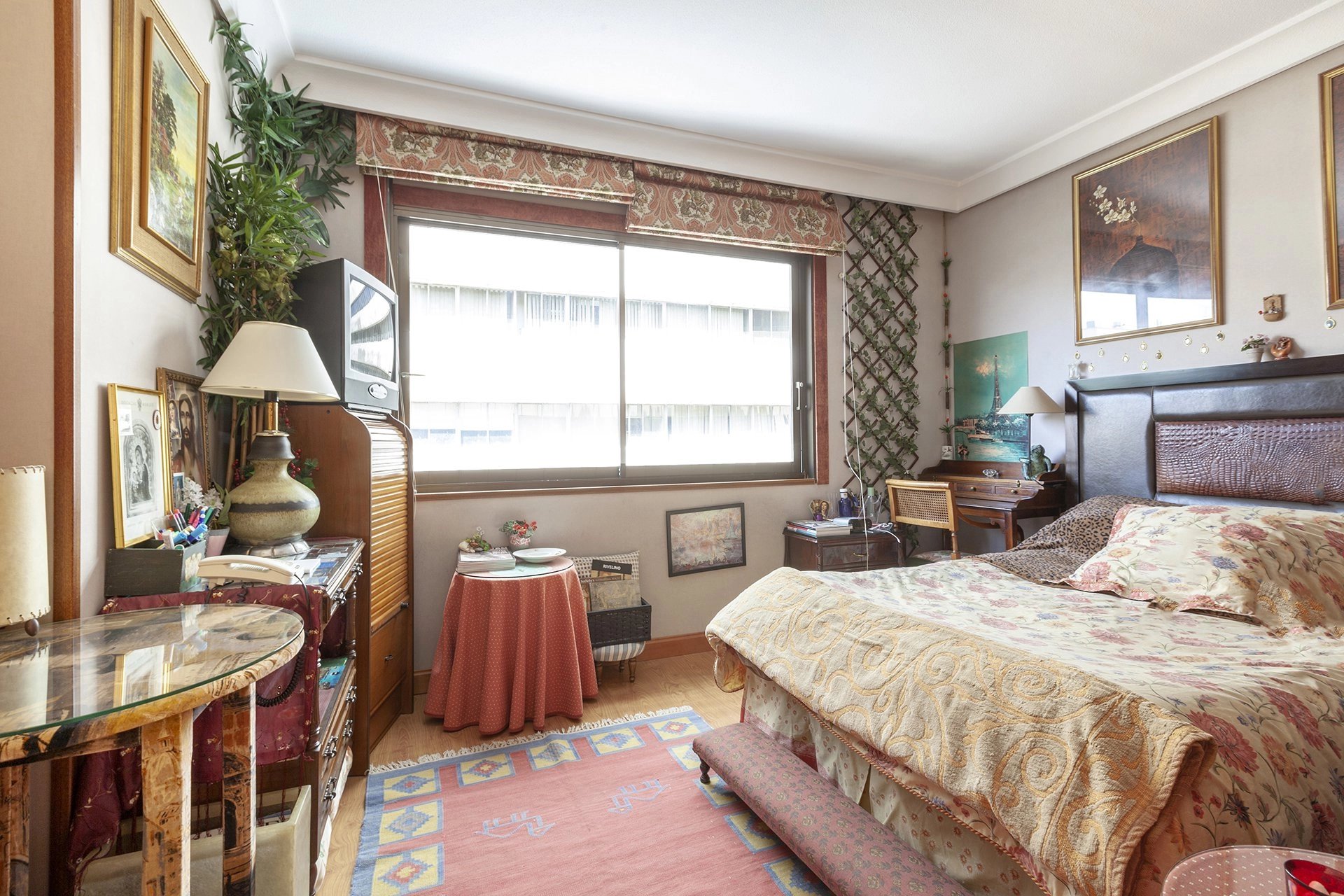 Its current distribution is one large exterior double bedroom with a bathroom, a big living-dining room that serves as a distributor of the house, and a small fully equipped kitchen. The building is one of the most representative of the Salamanca neighborhood, with a very prestigious community of neighbors. It has central heating and air conditioning services, several elevators, and 24 hour concierge service. It has a large garage where you can get places for rent and sale and get optional storage.