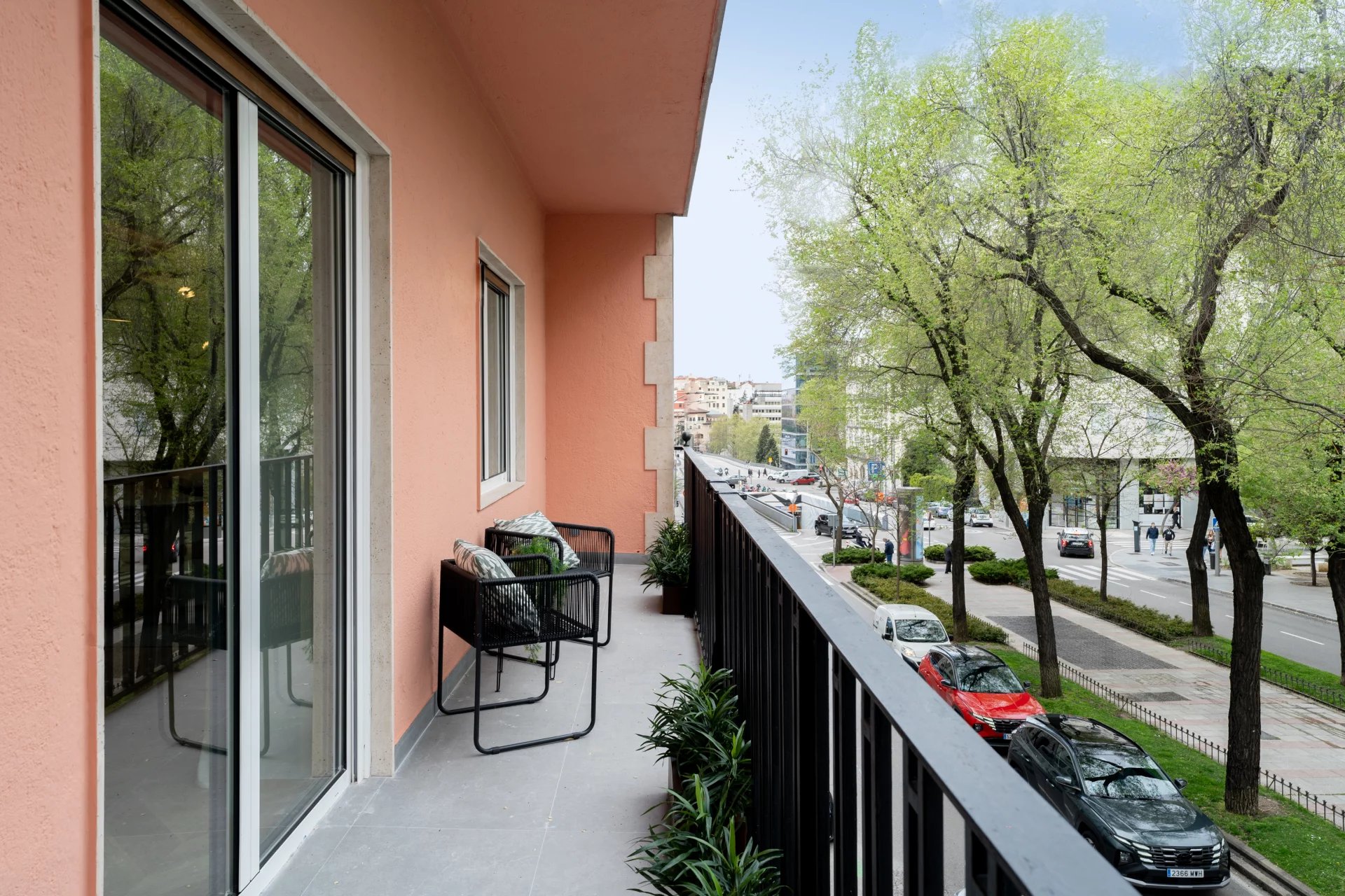 The main living room opens onto a large balcony with unobstructed views, perfect for enjoying the good weather, while the floor-to-ceiling windows flood the entire apartment with natural light.