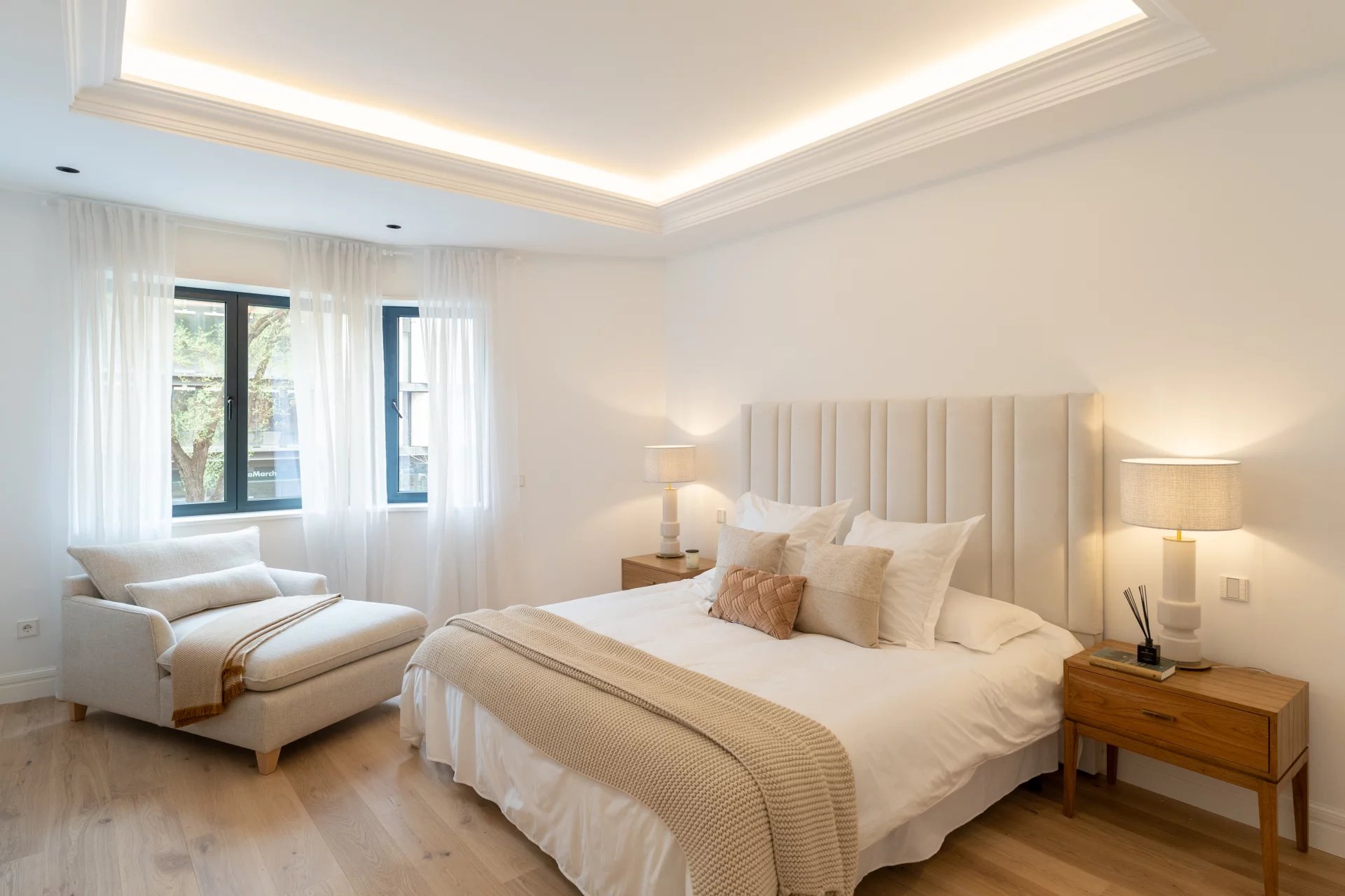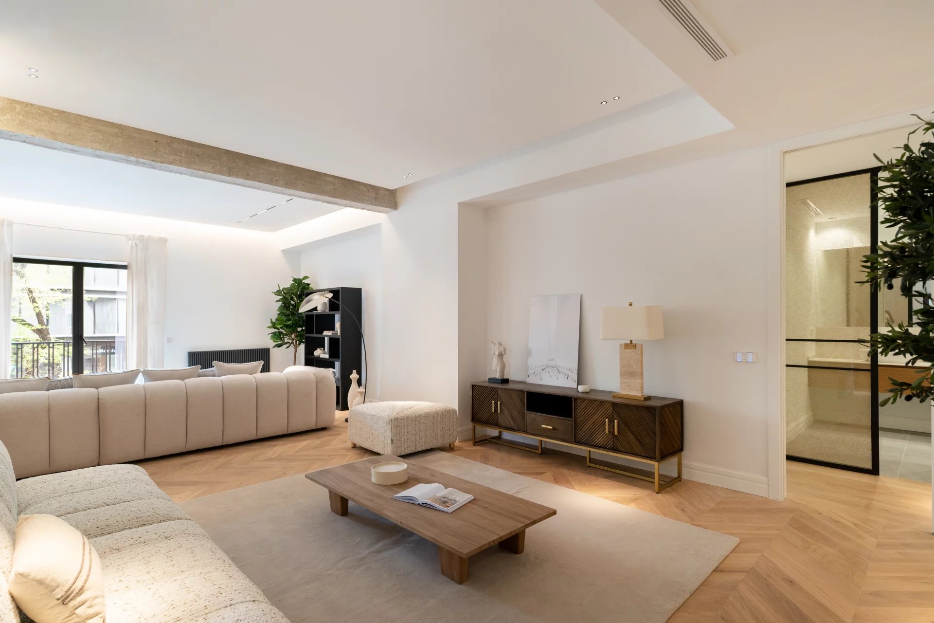 With an excellent distribution with open and bright spaces and ceilings of 3 meters high, this contemporary design property has been completely renovated with premium qualities. It has 3 double bedrooms with en suite bathrooms, with spacious dressing rooms and natural light, plus a service bedroom with private bathroom.