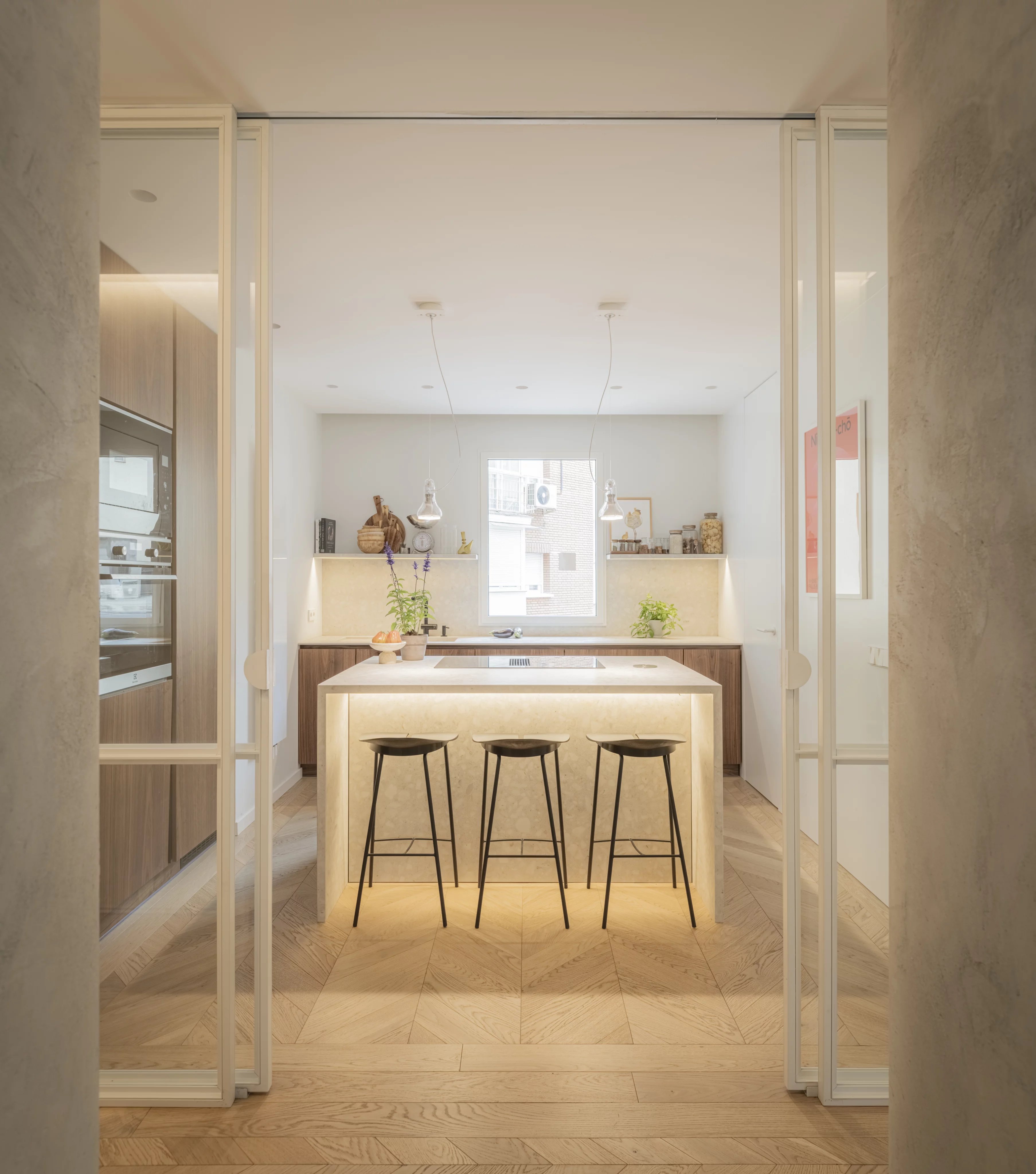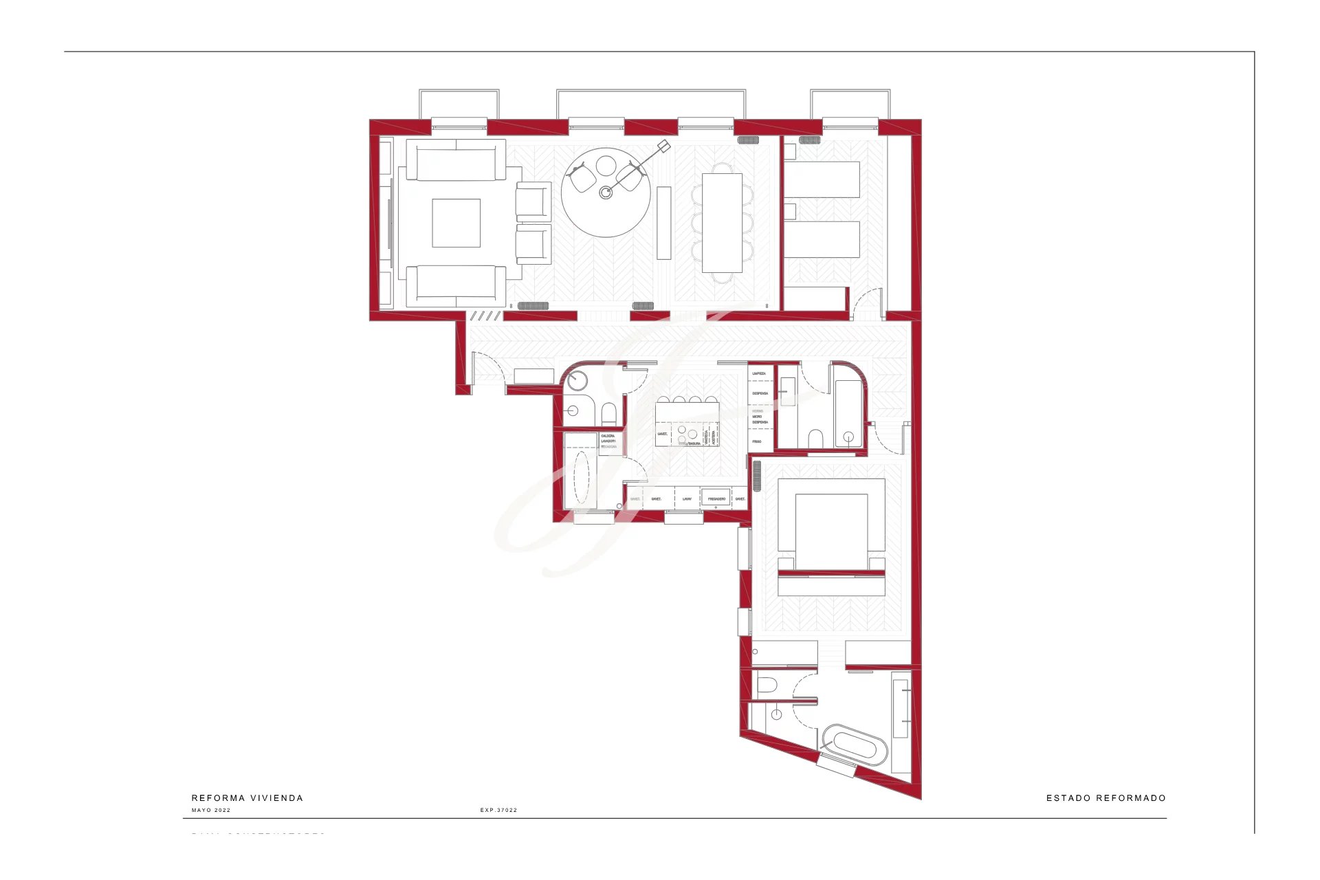 It has a unique, elegant and modern design with high quality finishes and materials, which together with its furniture of the best brands redefine luxury in the world of Madrid renovations.