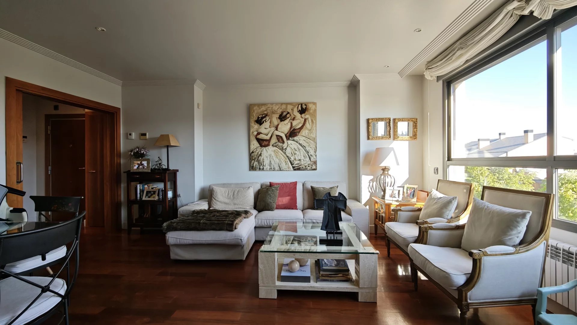 John Taylor presents this corner duplex penthouse with terrace and stunning views of the Encinar de los Reyes and the towers of Madrid, in one of the best urbanizations of the Encinar. A very bright apartment