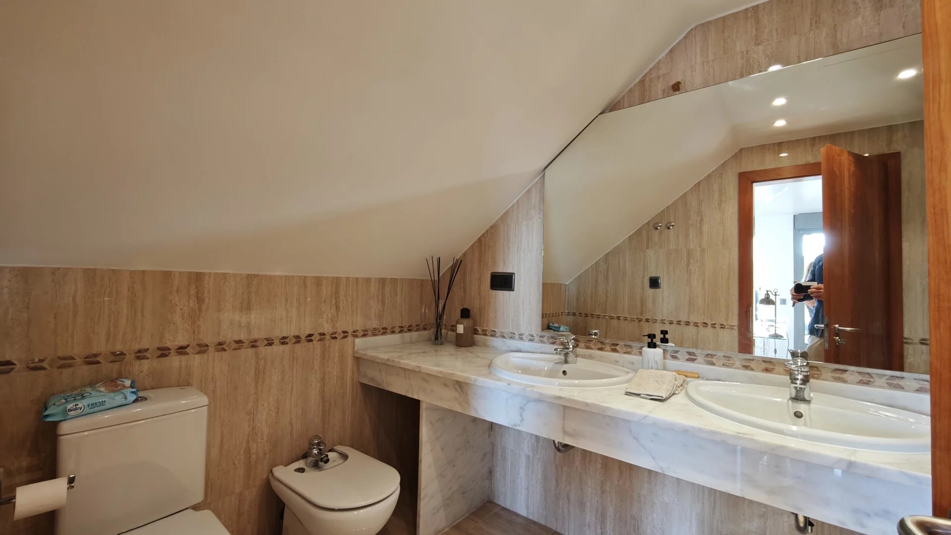 Upstairs is a living room or large room, which can be used as a bedroom with bathroom and access to a terrace with wide and unobstructed views.