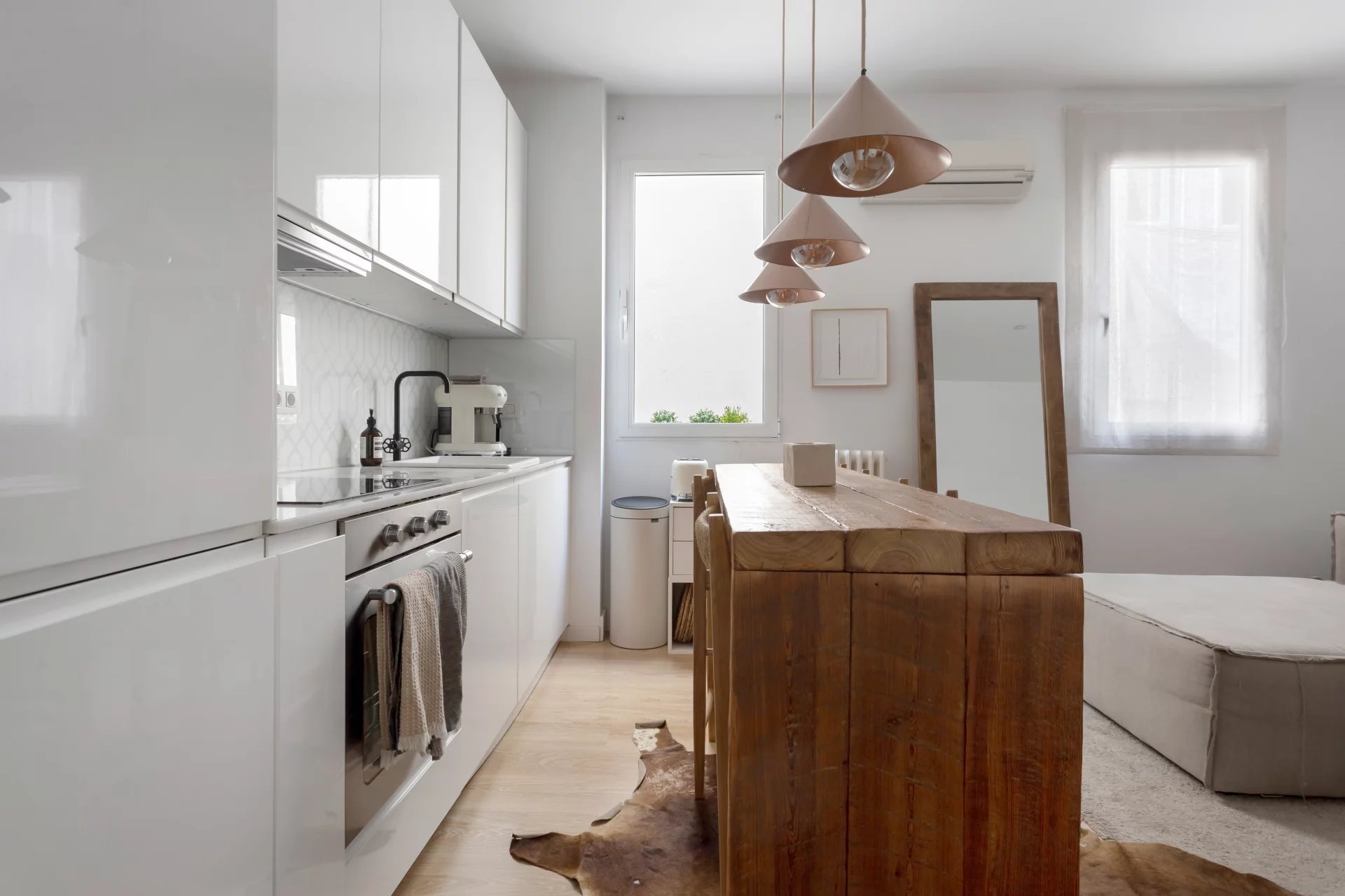 The living and dining room opens to the open plan kitchen forming a single open space. It has been furnished by its owners and every aspect has been carefully thought out. The apartment is in perfect condition.