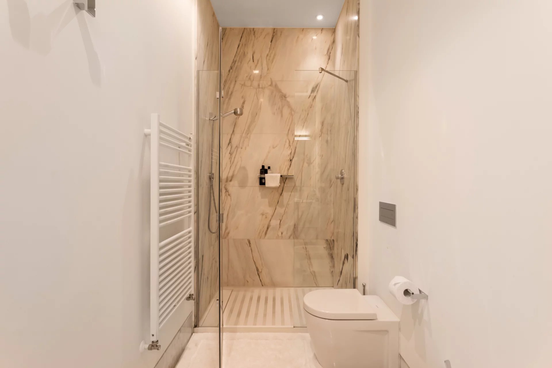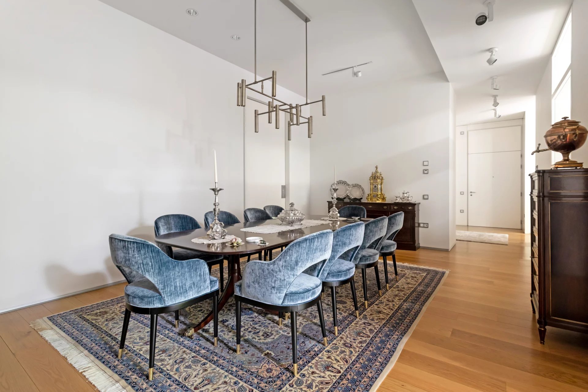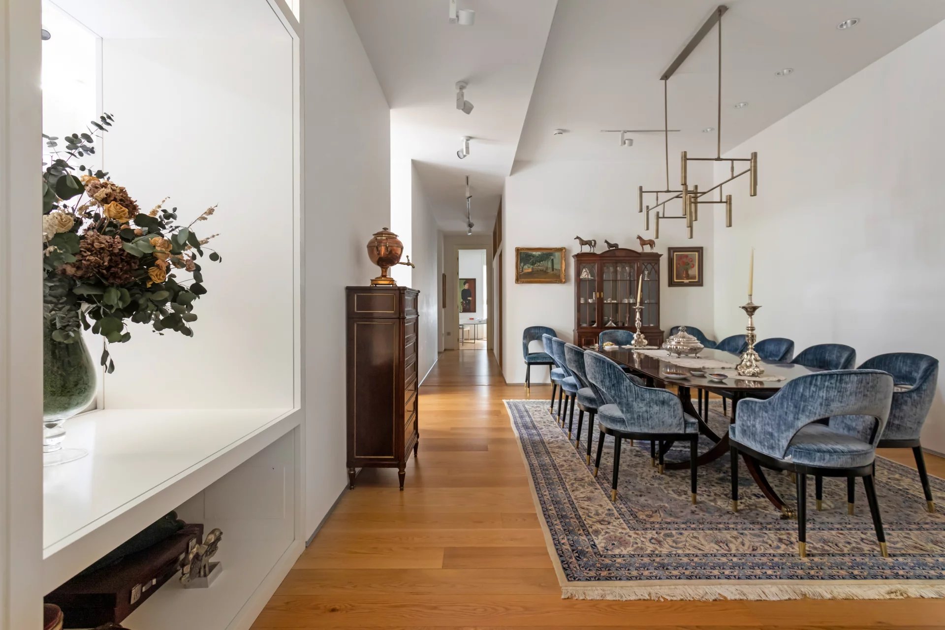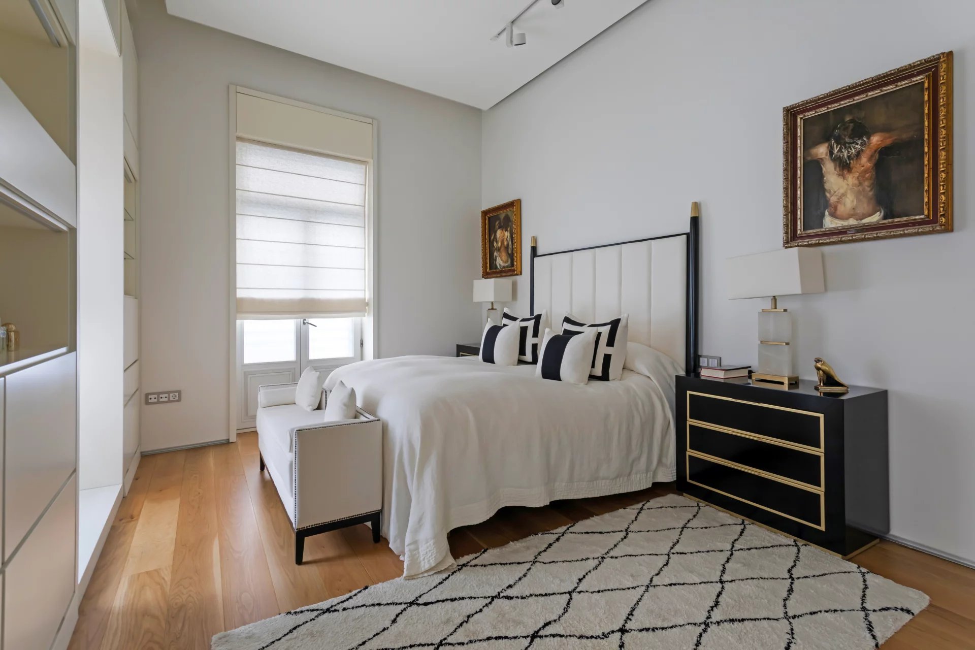 The flat is totally exterior with two facades, which allows all the rooms to have natural light. Thanks to its 8 balconies facing South and West, its large terrace and its ceilings over 3.5 metres high, this flat exudes elegance and exclusivity.