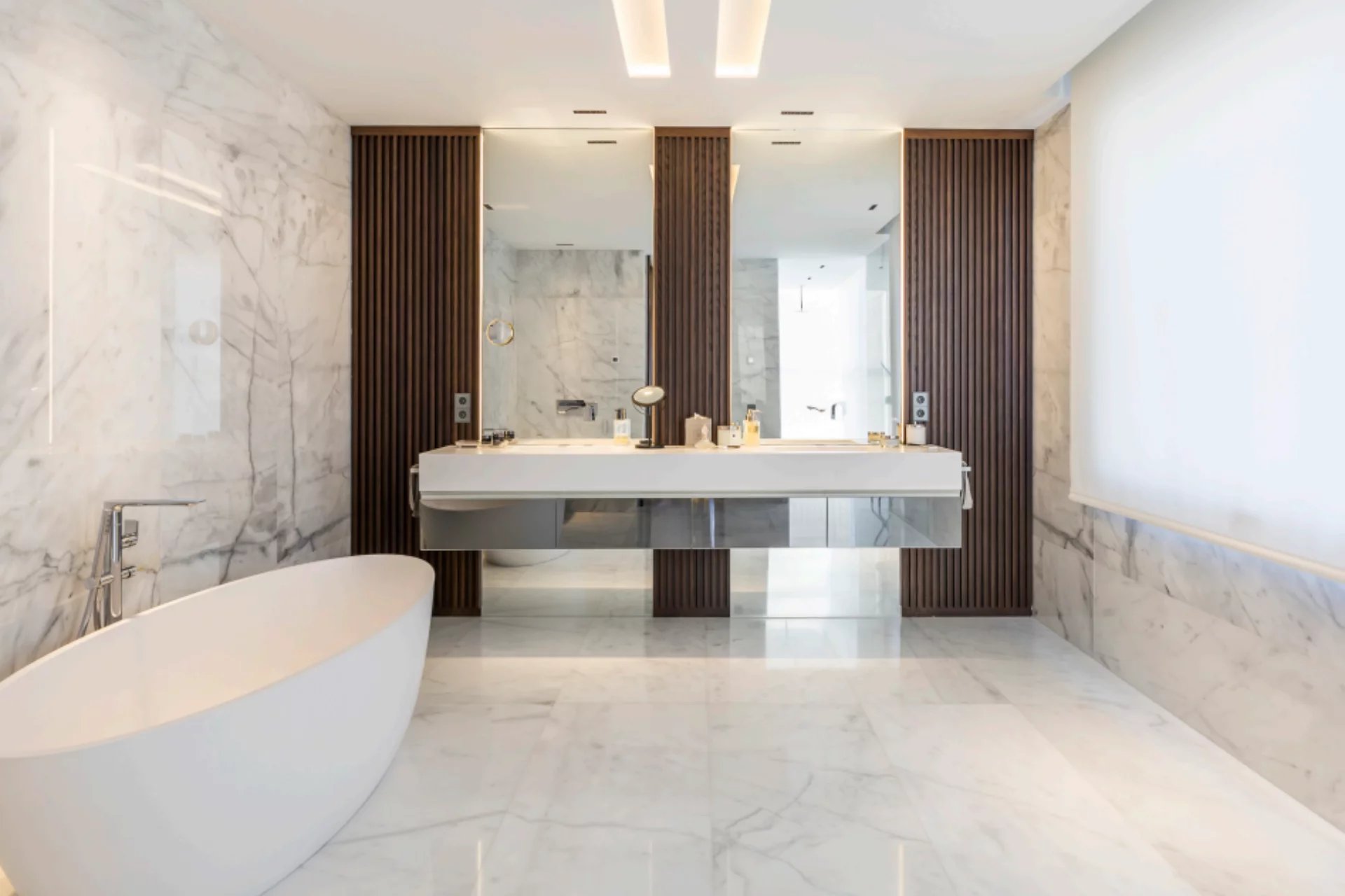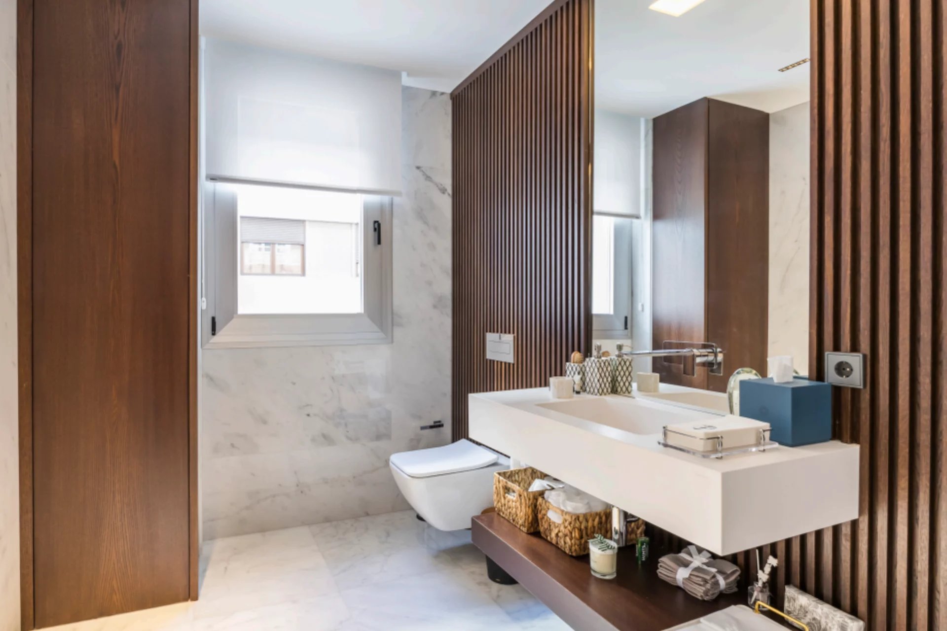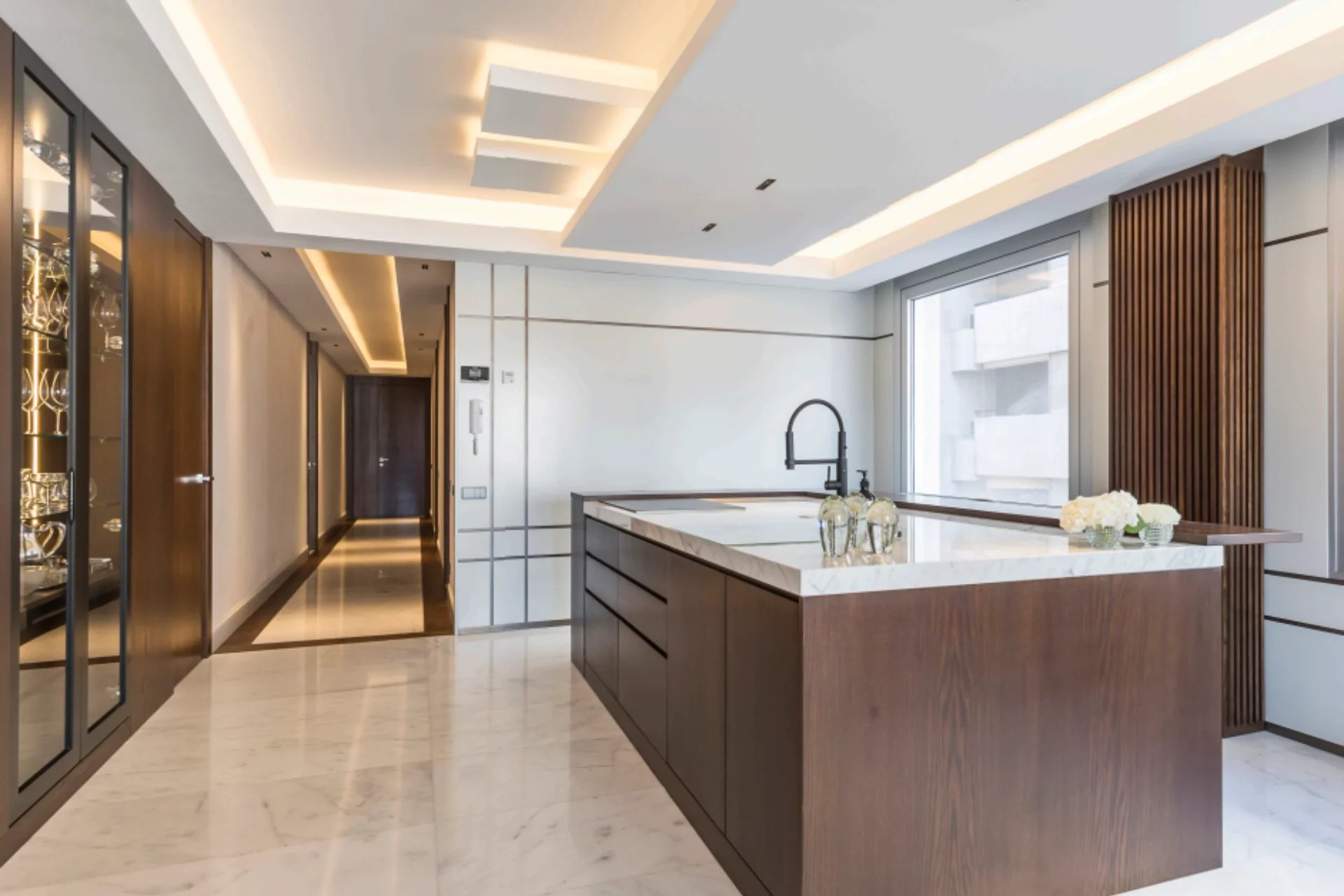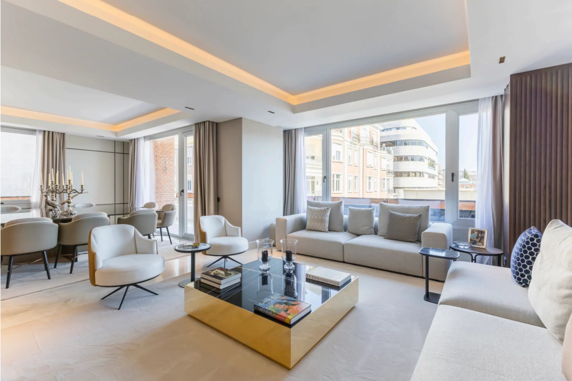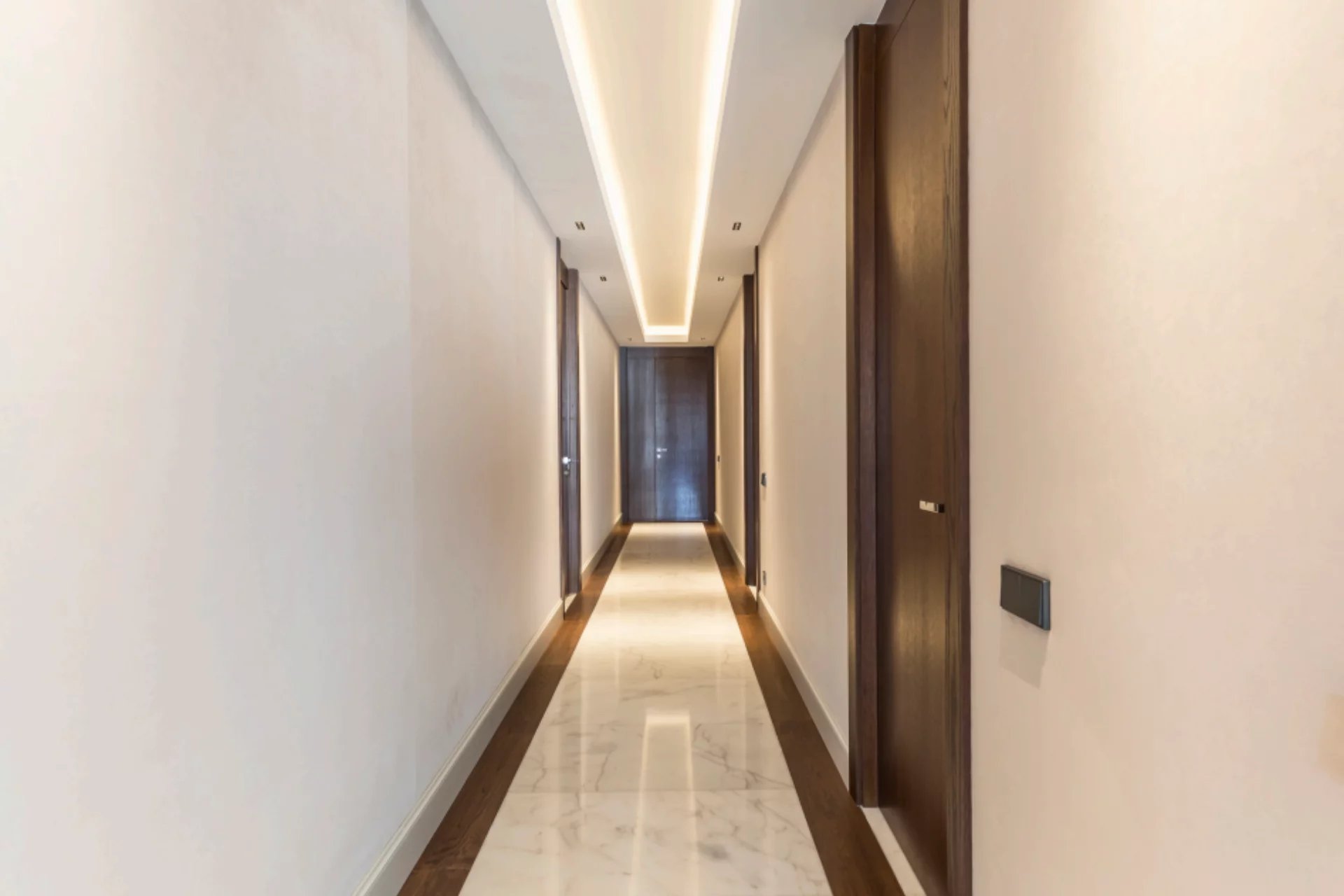 Located in one of the best areas of Madrid, this exceptional property combines international modern design with top-quality finishes. Created by a renowned interior design studio, it features noble materials such as dolomite marble and natural oak wood, giving the home a unique character.